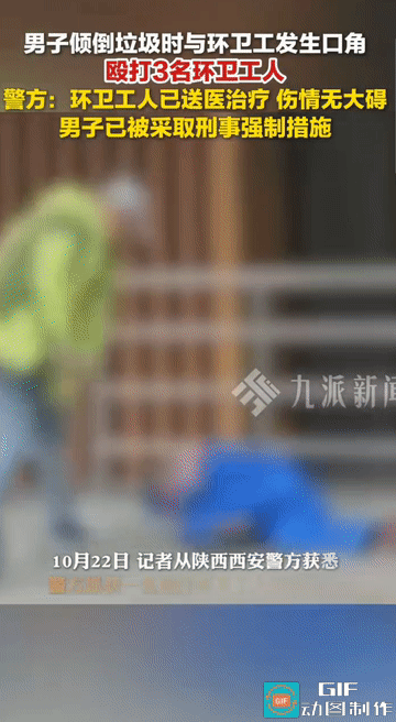“太恶劣了!”陕西西安,一男子在倾倒垃圾时,不知什么原因与在场的环卫工人发生了口角。男子一怒之下竟直接动起手来,暴力殴打了三名环卫工人! 来源:【九派新闻】 根据目击者描述,男子在倾倒垃圾时与环卫工人发生分歧,随后情绪异常激动,开始对环卫工人们进行言语辱骂! 很快,口角升级为肢体冲突,男子直接对三名环卫工人大打出手! 现场视频显示,男子的每一个动作都充满了暴力与残忍,他高高扬起的脚,如狂风骤雨般沉重的打击,无情地倾泻在环卫工人身上! 环卫工人们蜷缩着瘦弱的身躯,本能地试图护住要害部位,然而在男子疯狂且肆无忌惮的攻击下,他们的挣扎显得如此徒劳! 周围,原本静静躺着的垃圾被踢得四处飞溅,杂乱地散落各处,与环卫工人们痛苦的神情和挣扎的身姿形成了极为鲜明且刺眼的对比! 西安警方在接到报警后,高度重视这起殴打环卫工人的案件,迅速采取行动! 凭借专业的侦查能力和高效的行动效率,警方在当日就成功抓获了嫌疑人王某。经过深入调查,警方掌握了充分的证据,认定王某的殴打行为已涉嫌刑事犯罪! 根据我国相关法律规定,警方依法对王某采取了刑事强制措施! 这起事件一经曝光,迅速在网络上引发了广泛关注和热议,网友们纷纷在评论区留言,表达自己对这起暴力事件的强烈愤慨和谴责! “环卫工默默付出,为何总被欺负?” “法律必须严惩,才能刹住这股歪风!” “施暴者挑中的,正是这个最不敢反抗、最容易被忽视的群体,必须为他们讨回公道。” ………… 环卫工人被誉为城市的“美容师”,他们每天迎着晨曦走上街头,用辛勤的汗水换来了城市的整洁与美丽! 然而,他们却长期深陷“弱势困境”之中! 而此次事件直接启动了刑事强制措施,对涉案人员实施了刑事拘留等严厉措施。这一举措彰显了法律的威严,向社会各界表明,无论矛盾起因如何,任何形式的暴力行为都绝不能被容忍! 当执法的天平开始坚定地向弱者倾斜,我们才真正触摸到了司法正义那温暖而有力的温度! 一位网友的留言道出了公众的共同心声:“不要用你的拳头,去挑战社会的良知和法律的底线。” 那些在晨曦中挥舞扫帚的身影,应该得到的不只是“城市美容师”的虚名,而是实实在在的尊严守护!