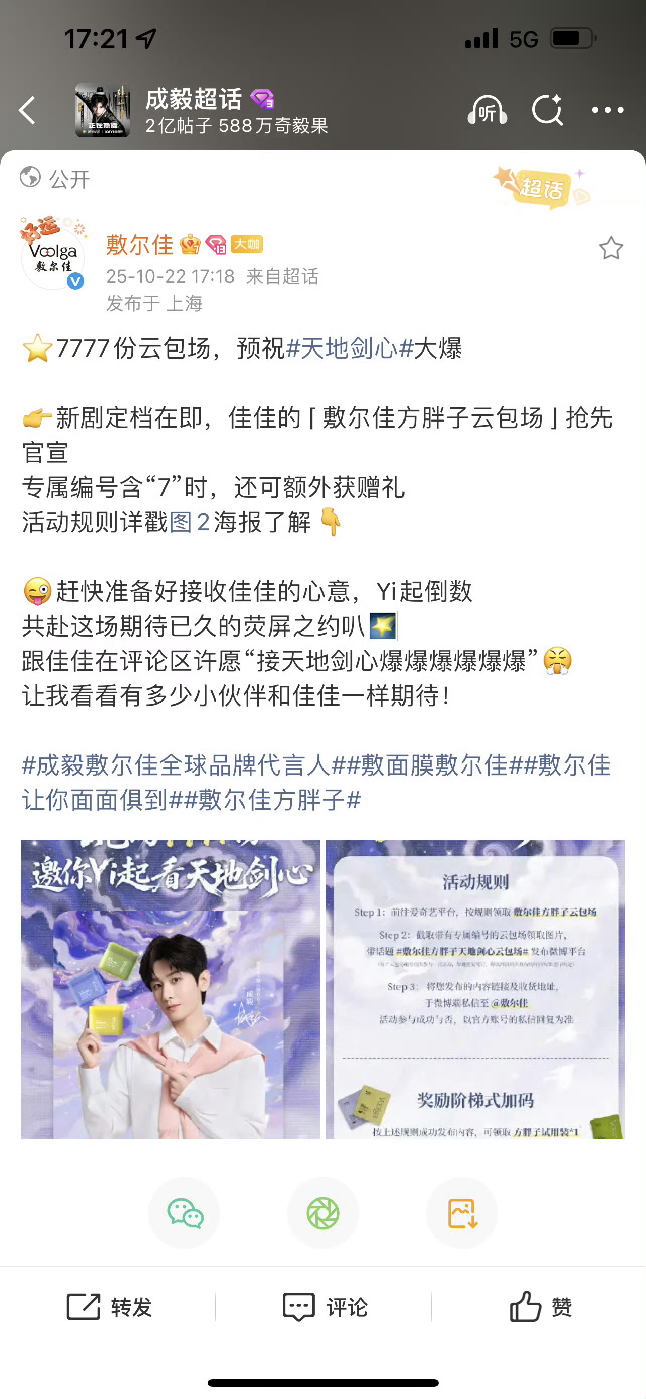 成毅剧播品牌应援太震撼[点赞],内娱剧播排面新标杆!20+代言品牌齐齐为《天地剑