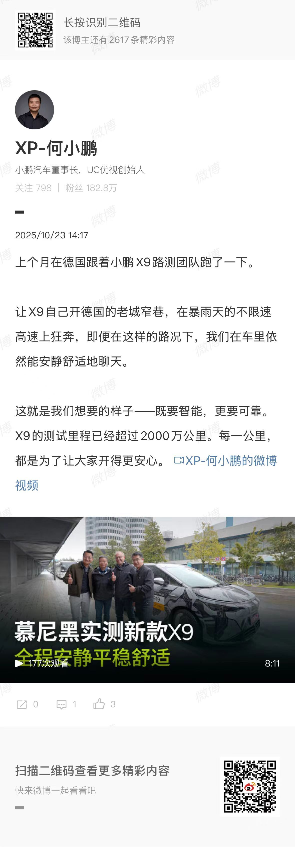 新车上市前的路测还是很重要的,现在越来越多车企老板亲自参加新车路测了,何小鹏带队全球路测新款X9,好事儿。