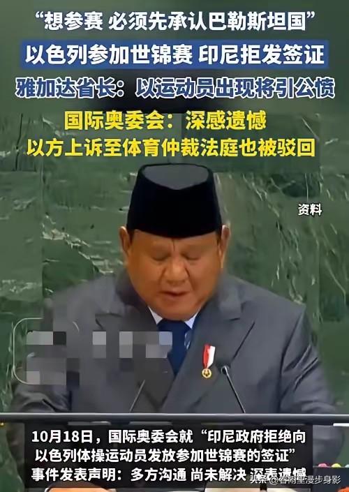 终于不装了!将双标进行到底! 国际奥委会选择终止与印尼对话,彻底把它的底裤露了一个干净! 印尼这回麻烦大了。就因为在雅加达办的体操世锦赛上,不给以色列运动员发签证,国际奥委会直接终止了和印尼奥委会关于未来举办奥运会的所有对话。这意味着印尼想申办2036年奥运会的梦,基本碎了。 这还没完,奥委会还建议所有国际体育联合会,暂时都别在印尼办比赛了。等于说,未来大大小小的国际赛事,印尼都可能没份了。 面对这么严重的后果,印尼政府倒是很硬气。体育部长托希尔明确说,他们这么做是为了"维护安全、公共秩序", 他们不是第一次这么干了。有报道说,2020年的U20世界杯,印尼也因类似原因被取消了主办权。看来,他们是明知后果也坚持这么做。 国际奥委会这个决定,让很多人想起了他们对待俄罗斯的态度。有网友直接质问:"那俄罗斯呢?" 克里姆林宫发言人佩斯科夫也批评奥委会这是"双重标准"。 大家都看出来,同样是涉及政治因素的处罚,标准好像不太一样。国际奥委会强调的"非歧视、政治中立"原则,到了实际操作时,似乎打了折扣。 有网友说得挺直白:"谁稀罕啊,这么双标的国际奥委会!" 还有网友补充道:"现在的经济形势哪个国家愿意接你的奥运会,自己花钱搭舞台..." 这话糙理不糙。现在办奥运会,对很多国家来说确实是笔沉重的经济负担。印尼这回被排除在外,说不定反而是省了一笔巨款。 国际奥委会口口声声说体育要"非歧视、政治中立"。可它现在的做法,恰恰把自己拖进了政治漩涡里。 当体育被政治绑架,当标准可以因人而异,奥林匹克的纯粹精神还剩下多少?印尼这一巴掌,倒是打醒了不少旁观者。 各位读者你们怎么看?欢迎在评论区讨论。