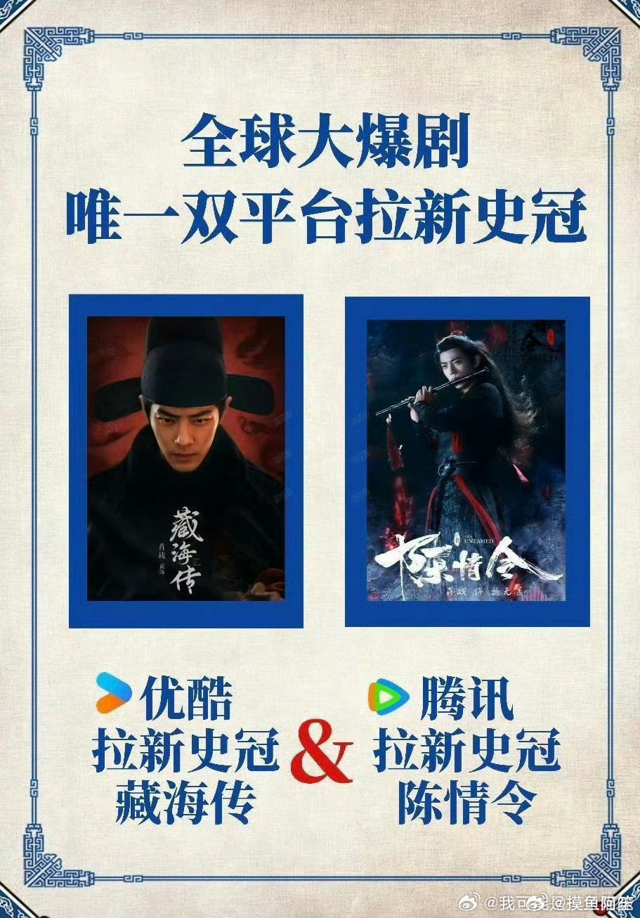 藏海传正式成为平台拉新史冠,也就是说肖战成为内娱唯一一个双平台拉新史冠的演员了,真的很牛[赞][赞][赞]肖战双平台拉新史冠