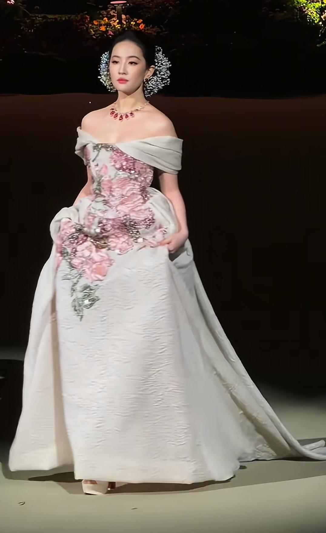 刘亦菲这次压轴红毯真的杀疯了 一袭缀满粉玫刺绣的拖尾裙,露肩设计衬得肩颈线条清瘦又舒展,所有人的目光都先落在她脸上,脖子上的红宝钻石也是第二次才能注意到,谁敢信她头上插的是满天星啊[求抱抱]还以为是什么珠宝💎 满天星在刘亦菲头上都显得光彩异常。 她身上有种很妙的松弛感:不恋综艺流量,不困婚恋俗套,没花边没塌房,只安安稳稳拍戏,连“不管旁人眼光”都成了自带的帅气。明明是站在聚光灯里的人,却活得像把生活握在自己手里的聪明人——美是天赋,清醒是底气,这大概就是“神仙姐姐”越活越让人着迷的原因吧,连岁月都只肯给她添气质,不肯留半分俗态。