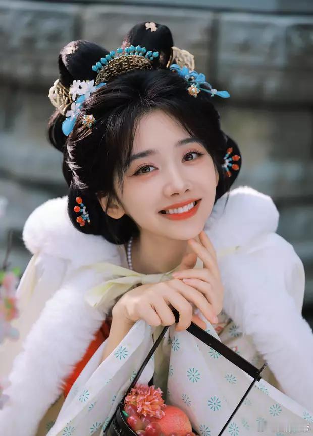 分享娱乐[超话]分享娱乐 王影璐披毛绒披风少女感十足, 手拎果篮活泼灵动