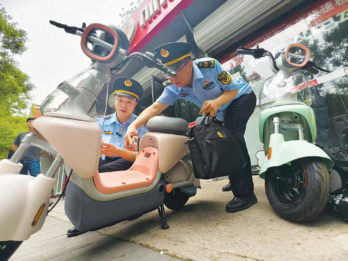 8月26日,海淀区市场监管局对辖区内一家电动自行车销售门店开展专项执法检查。新京报记者浦峰摄