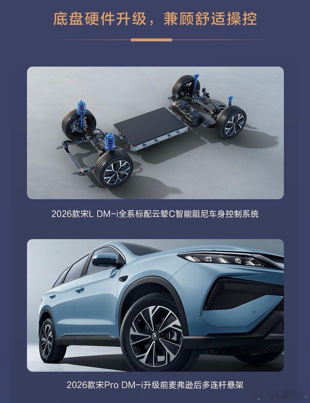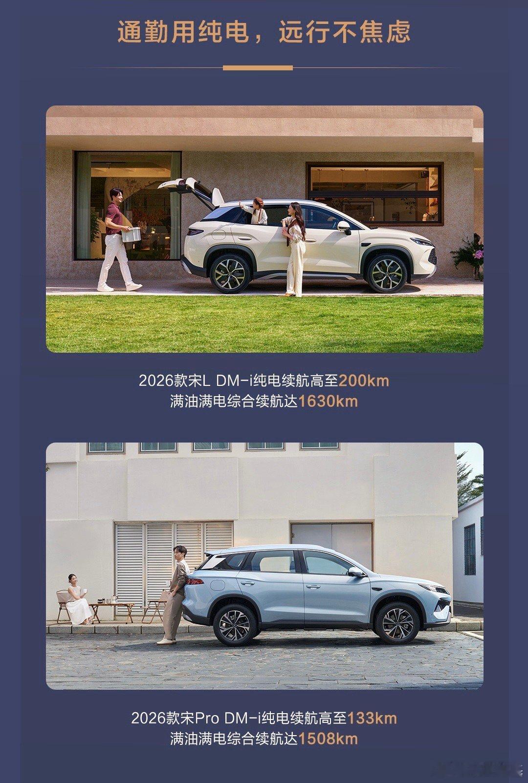 2026款宋L DM-i顶配纯电续航提升至200km,加上了冷暖箱、怀档等配置,并且全系标配了云辇-C、TBC高速爆胎稳行系统,产品力提升了不少。
