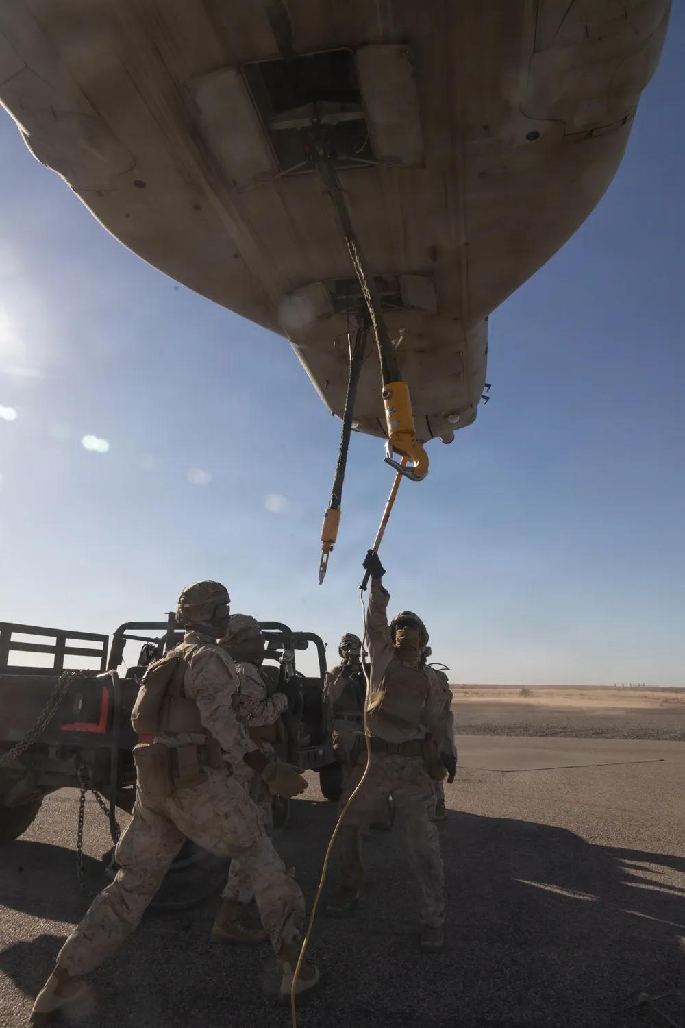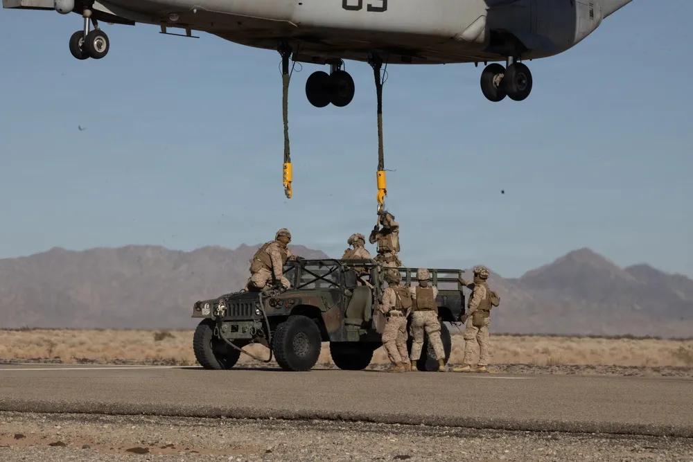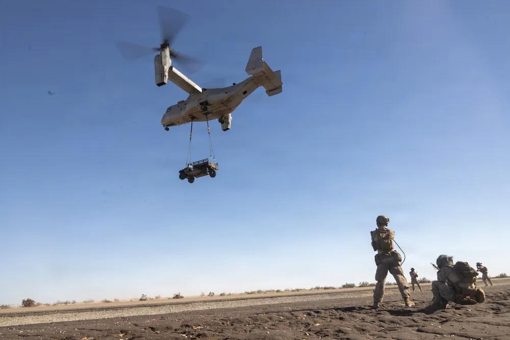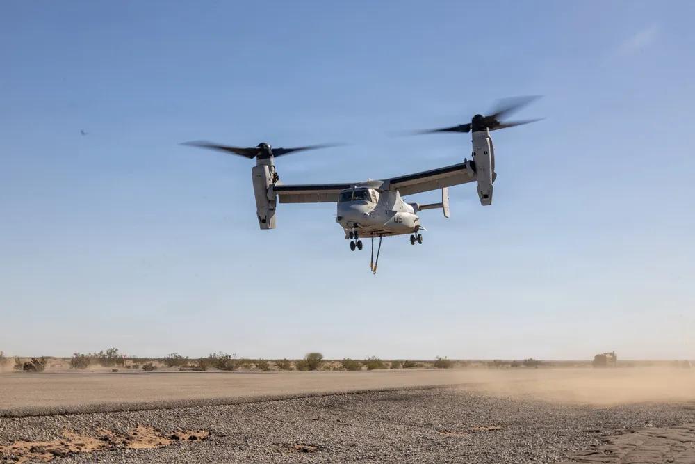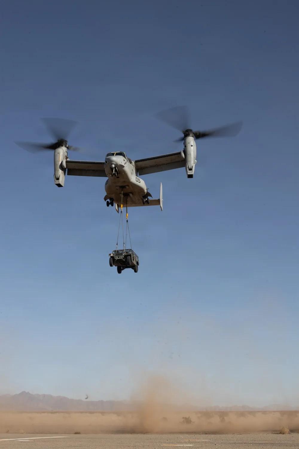 尽管鱼鹰倾转旋翼机事故频发,但美军仍然把它当做主力机型用作运输。 2025年10月7日,隶属于美国海军陆战队航空武器与战术中队一(MAWTS-1)的MV-22B鱼鹰倾转旋翼机在亚利桑那州尤马附近的辅助机场二,,在武器与战术教官课程1-26期间起吊一辆悍马。WTI是由MAWTS-1主办的为期七周的训练活动,强调海军陆战队航空的六大职能在支持海军陆战队空地特遣部队、联合和联盟部队中的作战整合。