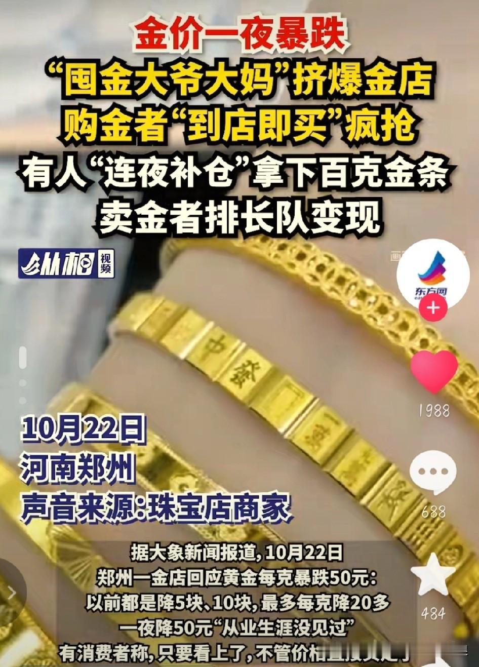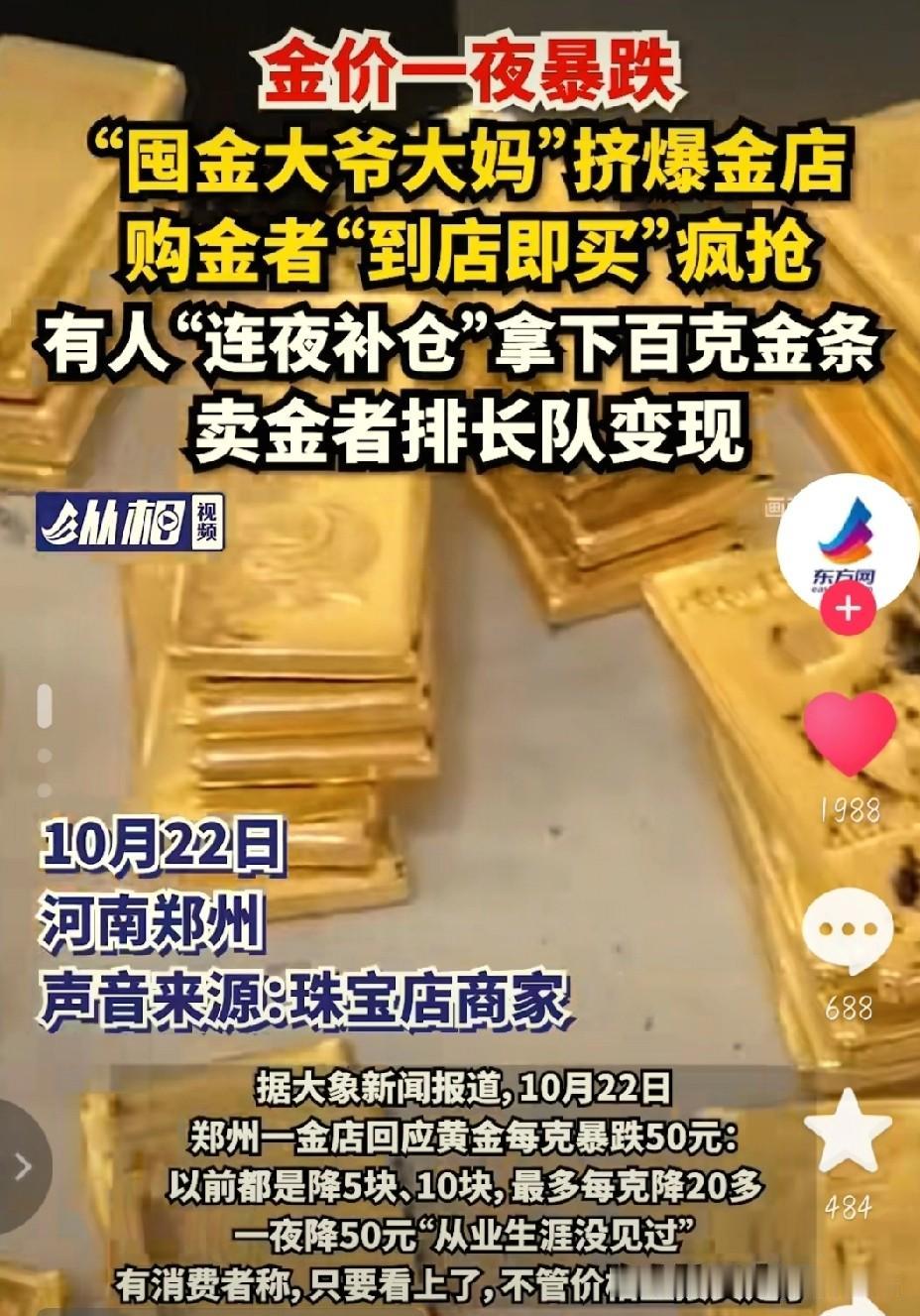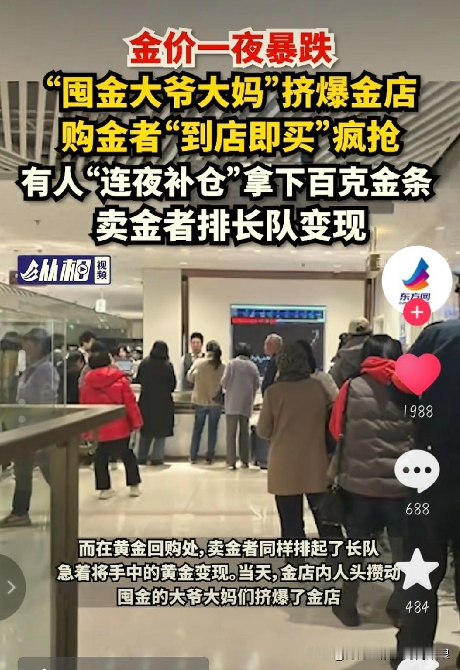 金价暴跌现场太魔幻!卖金的赚15万,买金的抢破头 金价一夜暴跌,金店里直接分