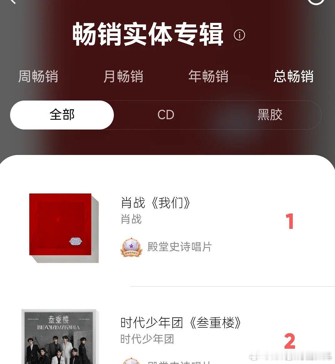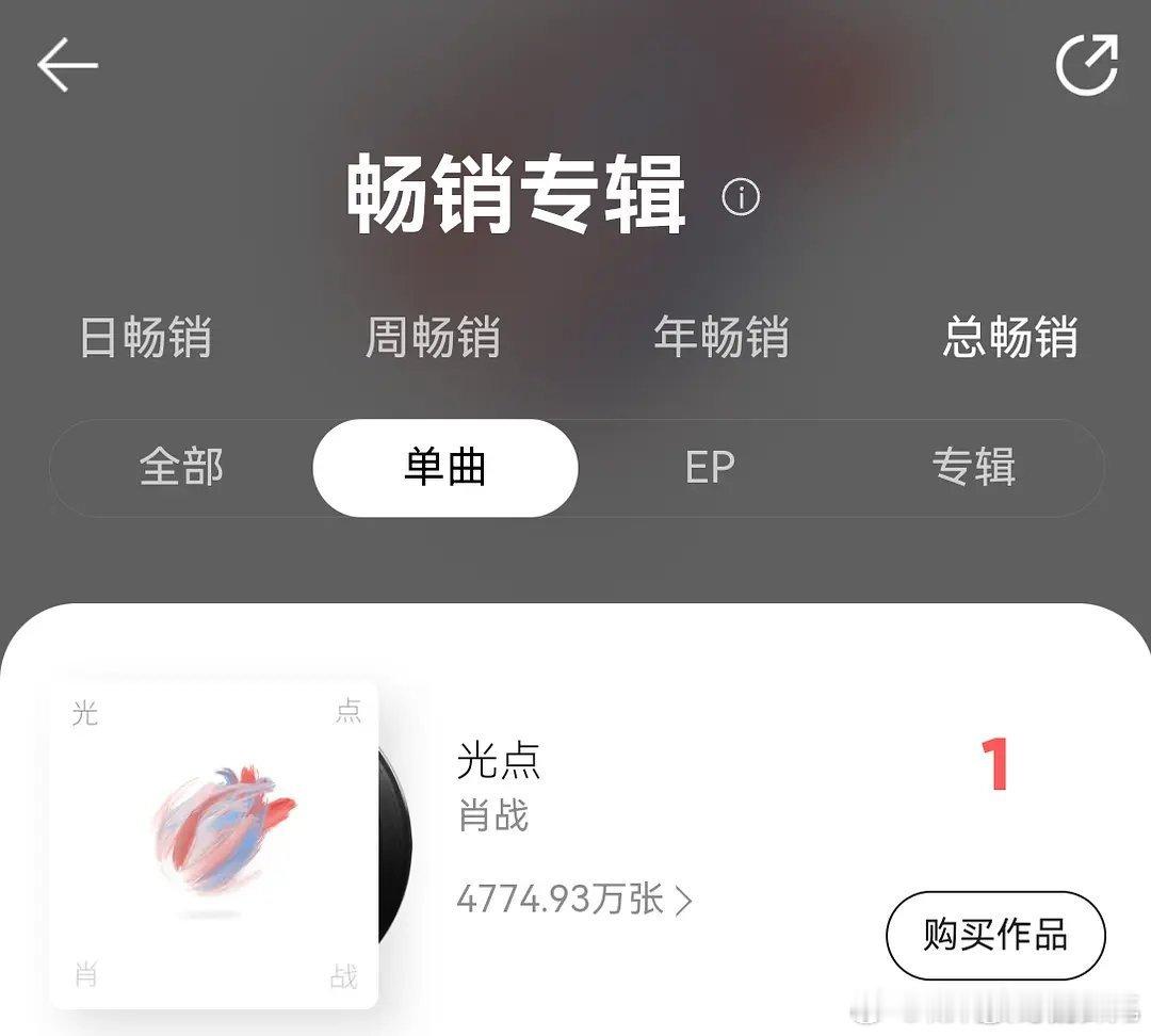 肖战还有腾讯旗下音乐榜单的单曲史冠,黑胶唱片专辑史冠。