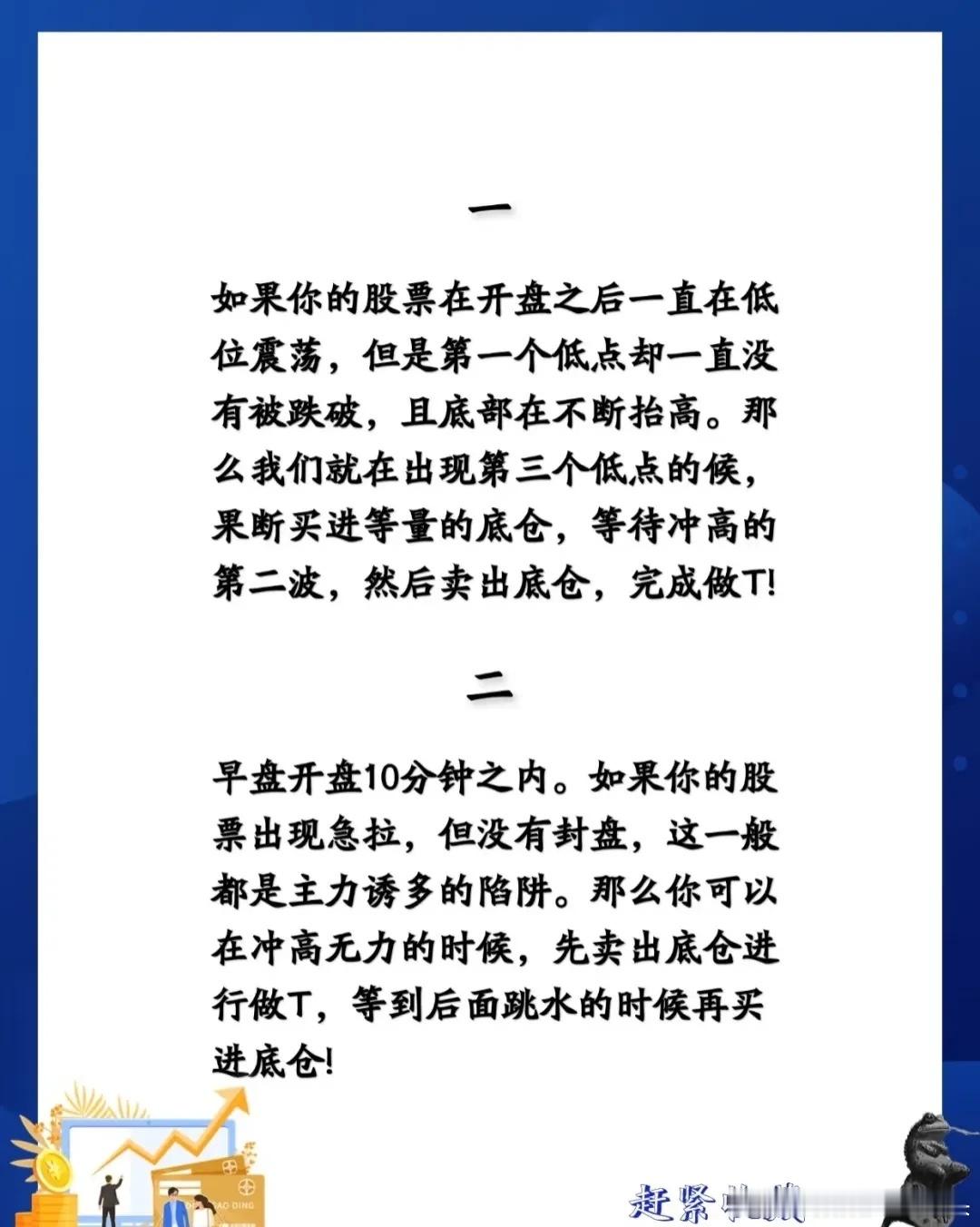 这5个做T技巧覆盖了震荡市(低位震荡、价格与均线背离)、早盘异动(急拉)、极端行情(急跌)、大盘联动(个股与大盘分化)等多种常见场景,核心逻辑是通过精准把握买卖时机(低买高卖或高抛低吸),在控制风险的同时积累收益。对于想要通过日内交易降低持仓成本、增强盈利能力的投资者而言,这些方法提供了具体的执行参考,但需结合自身风险承受能力和市场经验灵活运用,并注意严格止损纪律。