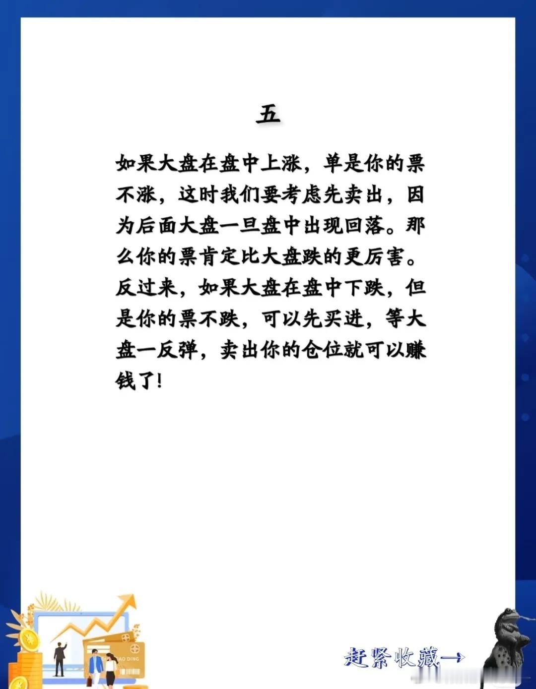 - 若大盘涨而个股不涨→ 提前卖出个股(因后续大盘回落时,个股可能跌幅更大);
