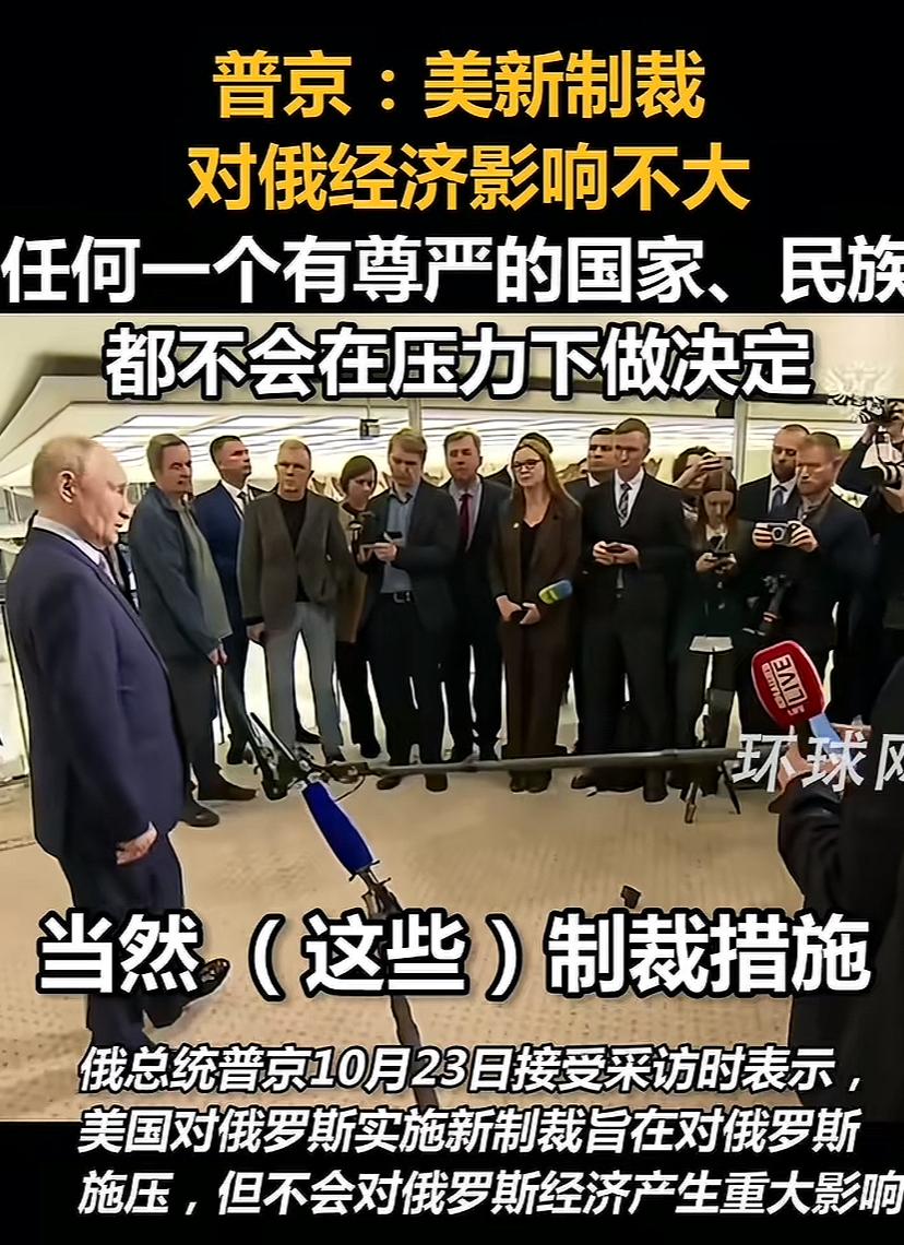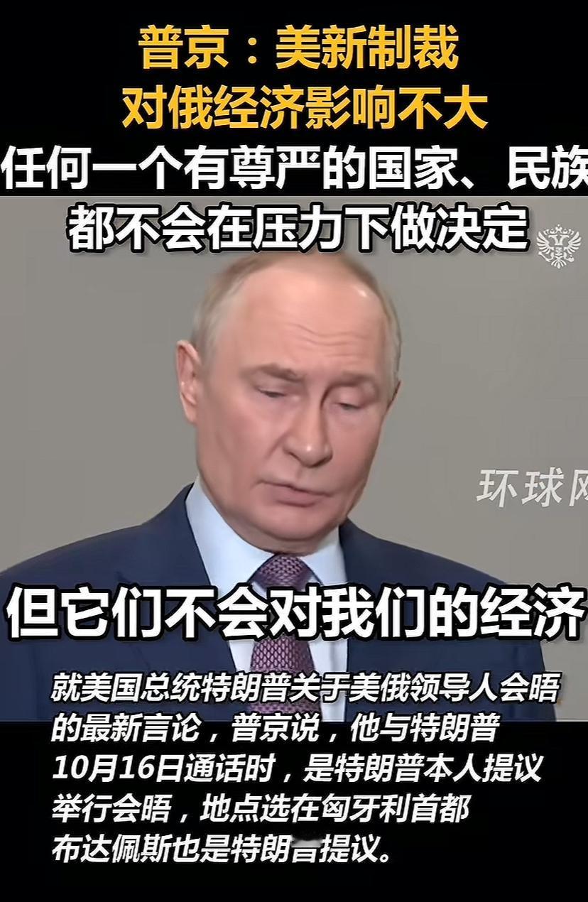 普京说,美国最新制裁对我们影响不大,作为一个有尊严的大国,不会在压力下做出决定。俄罗斯很明显的告诉美国人,要谈咱们好好谈,你拿制裁大棒逼着谈,我们不吃这一套,如果制裁一下就屈服了,一个大国以后还怎么混!