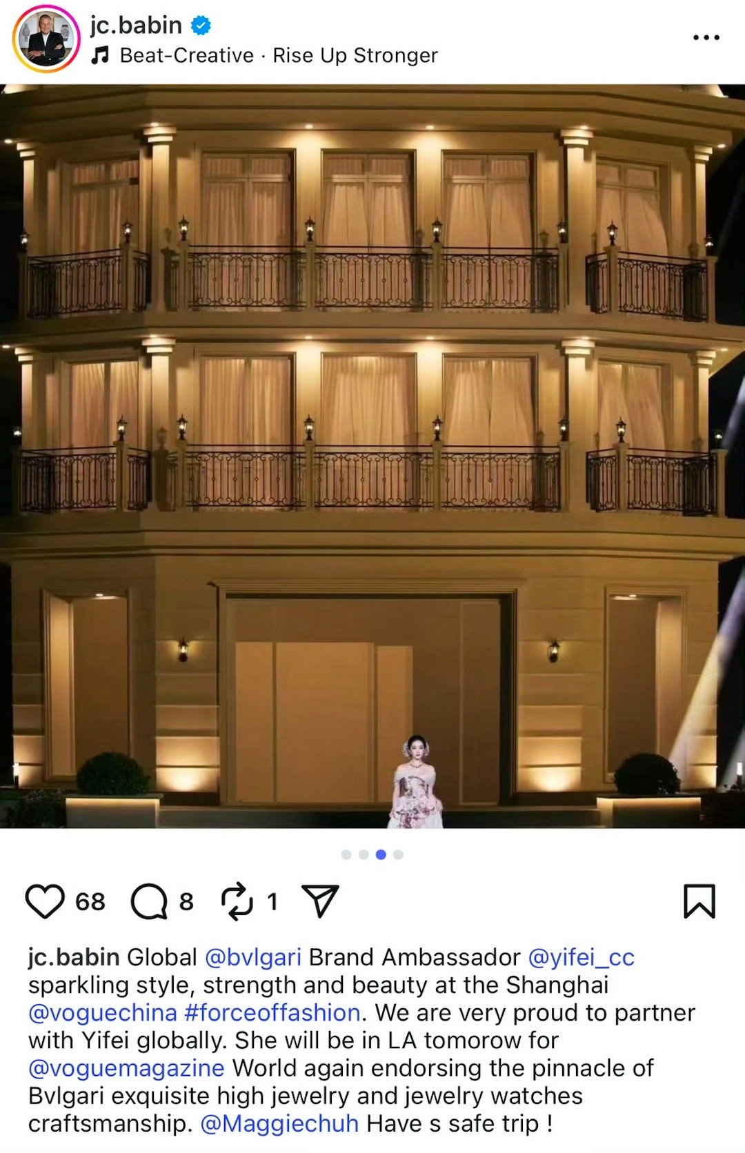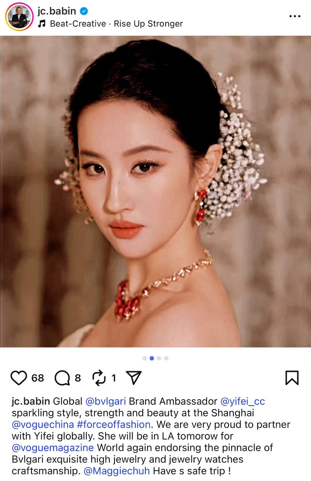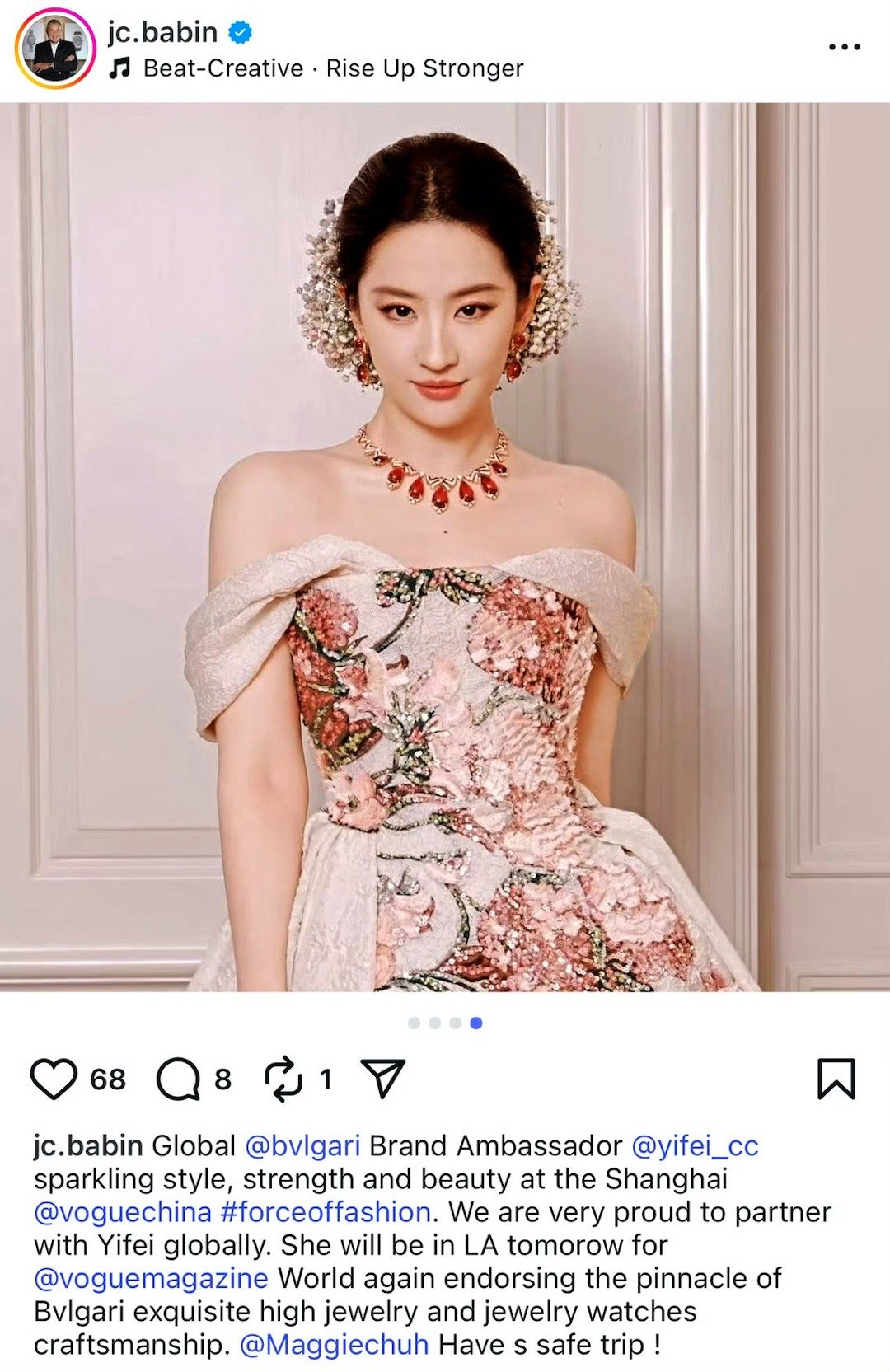 刘亦菲临场反应宝格丽总裁更新IG,分享多张美图[爱慕]