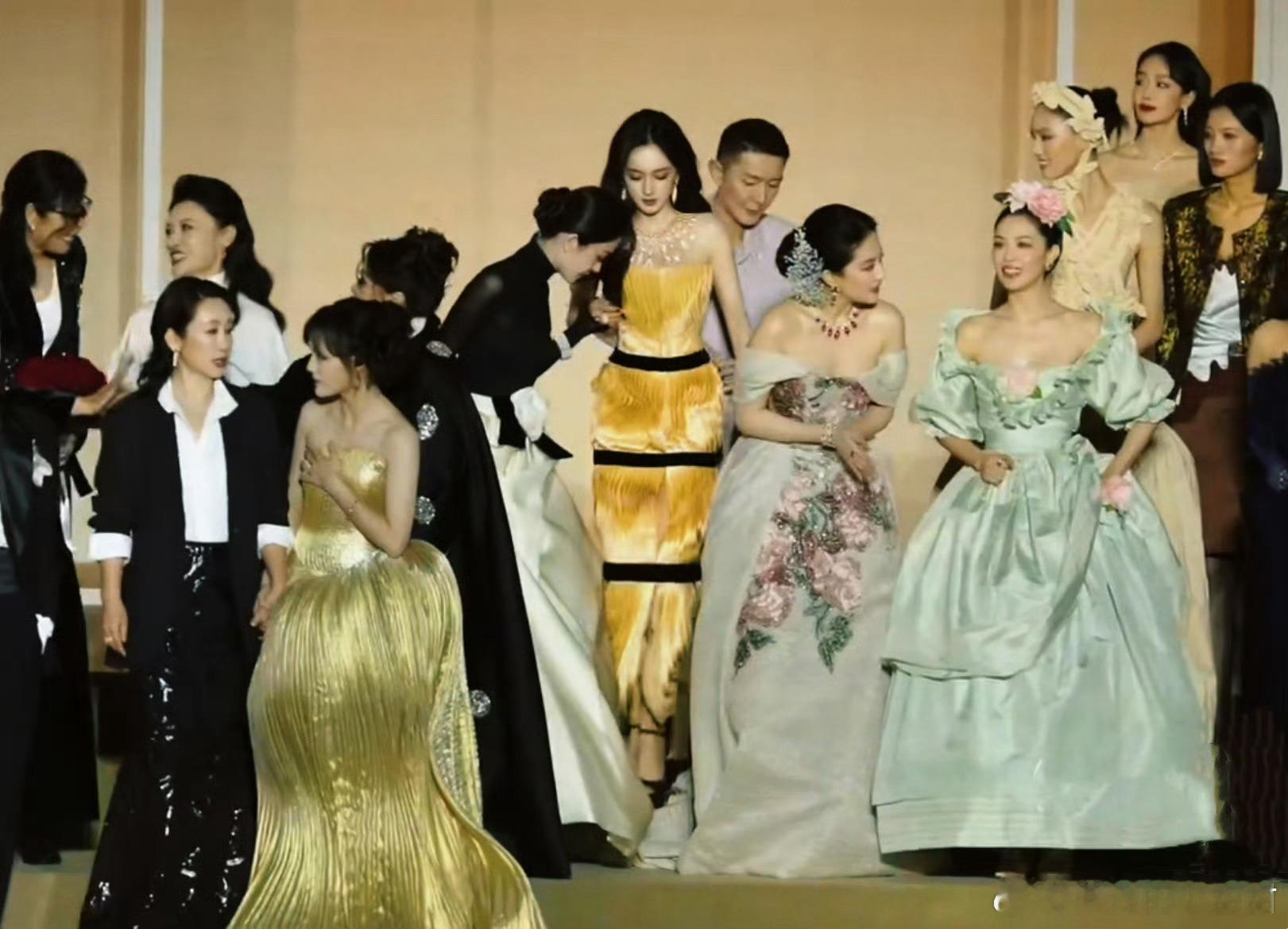 官方C位是主编刘冲居中,刘亦菲(红毯压轴)与杨幂(开场嘉宾)分列两侧。刘亦菲与杨幂共同占据中心位置,形成了“双C位”的格局。这既体现了刘亦菲凭借其国际影响力和高定资源获得的认可,也展现了杨幂在国内流量场中的稳固地位,但她在站位过程中的谦让与略显尴尬的表情,则进一步揭示了这种表面和谐之下关于资历、流量与实力的无声较量。钟楚曦站在刘亦菲右侧,其右边依次是周冬雨、马思纯、张小斐三位影后。钟楚曦站位