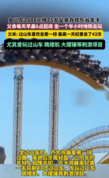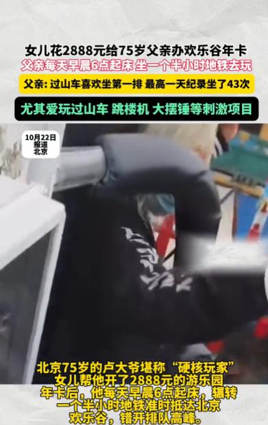 “这个大爷火了!”10月22日,北京,一75岁大爷每天早晨6点起床,乘坐一个半小时地铁只为去游乐园玩刺激项目,他一天能狂刷43次过山车,让不少年轻人都自愧不如!网友:大爷这是把过山车当晨练了![得意] 七十五岁的大爷每天清晨六点起床,换乘一个半小时地铁前往游乐园,直奔过山车、跳楼机等刺激项目,把惊险体验当成每日晨练。 大爷的女儿为父亲购买了一张游乐园年卡,本意是鼓励老人多出门走动,没想到老爷子对游乐项目产生了浓厚兴趣,甚至专门选择清晨人少时段前往,就为了能多体验几轮,他曾一天内连续乘坐过山车数十次,结束后依然神态自若。 在场游客看到这位白发老人从过山车上从容走下的模样,纷纷表示佩服,这位老人的体力让不少年轻人都自愧不如。 虽然年过七旬,但是大爷平时就注重锻炼身体,这才能够适应高强度游乐项目,老年人参与此类刺激项目前,务必评估自身健康状况,特别是患有心血管疾病、颈椎问题或高血压的老年朋友,更需要谨慎选择。 老年人保持积极生活态度值得鼓励,但选择适合自己年龄和身体状况的活动方式更为重要,散步、太极拳、游泳等运动都是不错的选择,既能活动身体,又不会造成过度负担。 看了这位北京硬核大爷的故事,评论区直接炸了锅,网友们那是佩服得五体投地,也留下了不少有趣的评论。 “你大爷永远是你大爷!这身体素质,我25岁坐3次过山车就得趴地上找不着北。” “给我爸看了这个视频,他摇摇头说:‘这老哥们的医保卡肯定没怎么用过,’真是羡慕这种硬朗的身体,希望我老了也能这么潇洒!” “老爷子厉害是厉害,但还是得定期检查身体啊,毕竟年纪在那儿摆着呢,咱们羡慕归羡慕,可不敢随便模仿。” “一天43次,就算不排队,一次算2分钟,那也将近一个半小时了,再加上中间走路、休息,大爷这体力分配和管理能力,简直是时间管理大师啊!” “大爷的火爆不仅是因为他惊人的体力,更是因为他展现了一种充满活力、打破年龄偏见的生活态度,他活成了许多人理想中退休的样子——有热爱、有激情、有健康。” “别说75岁,就是我年轻时候照着这个行程表玩一天,估计得叫救护车拉回来。” “大家看看乐一乐就好,可千万别让自己家老人盲目模仿,每个人身体状况不同,这么大运动量和精神刺激,必须得有专业的健康评估才行。” “大爷年轻时是不是在航天员训练队待过?这身体素质抗过载能力一流。” 如果你到了75岁,你会像这位大爷一样,选择一种非常规的、刺激的生活方式来享受生活吗?还是会选择更偏安静、传统的养老方式?快来评论区说说你的想法吧! 信源:江西旅游广播