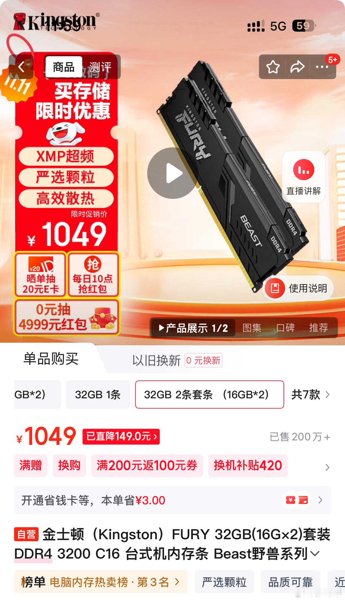 去年7月份16G两根456块,今年一模一样的1049块!![吃惊]