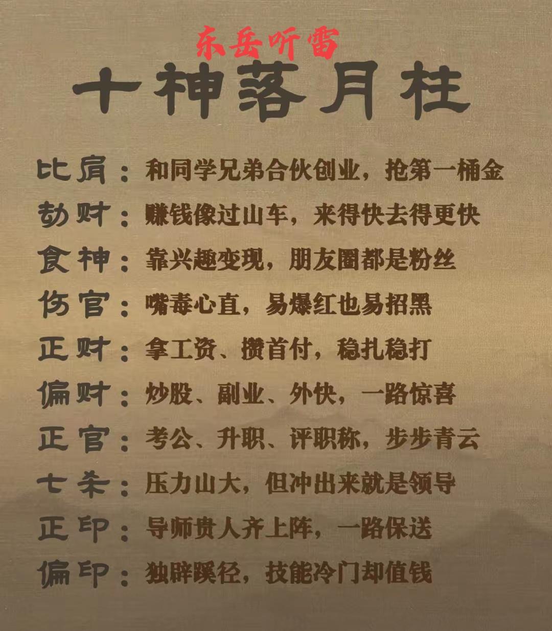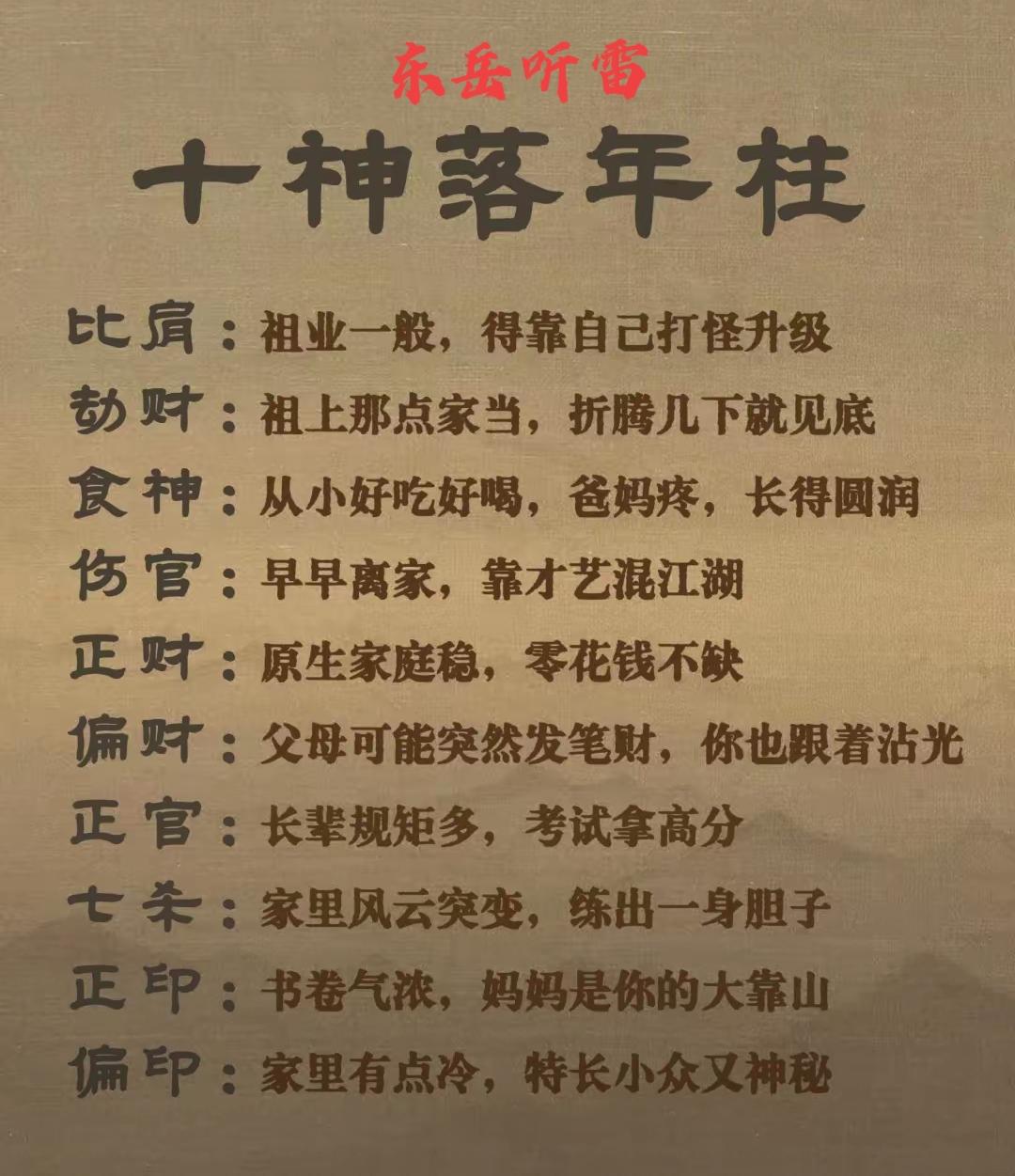 在传统命理学里,十神在年月日时四柱作用大不同。年柱上,正财代表祖先、遗产和早年运