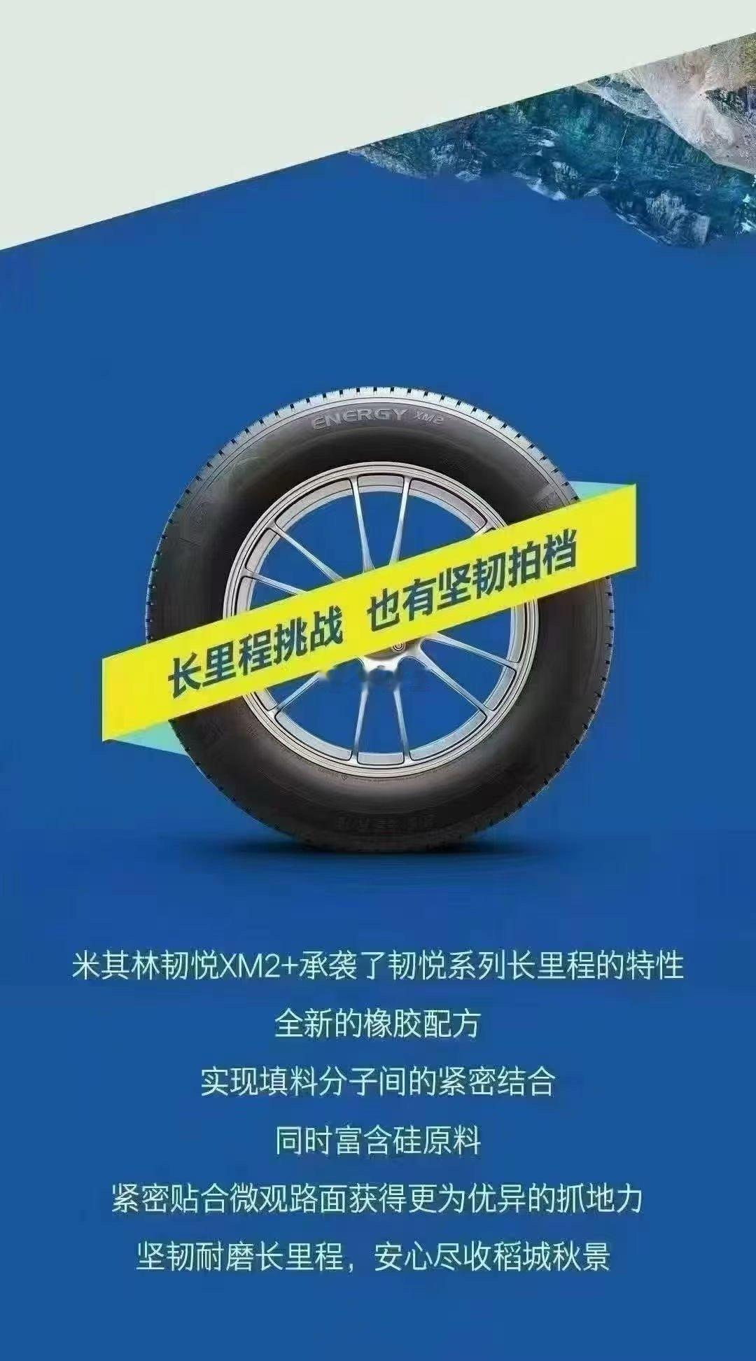 米其林XM2+又称韧悦加强版,专为中国路况打造,主打耐磨长里程,有着“小磨王”的美誉 。它采用新一代IronFlex技术,能坚固胎侧,降低胎侧鼓包发生率,同时胎面富含硅原料,可有效缩短湿地制动距离。