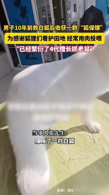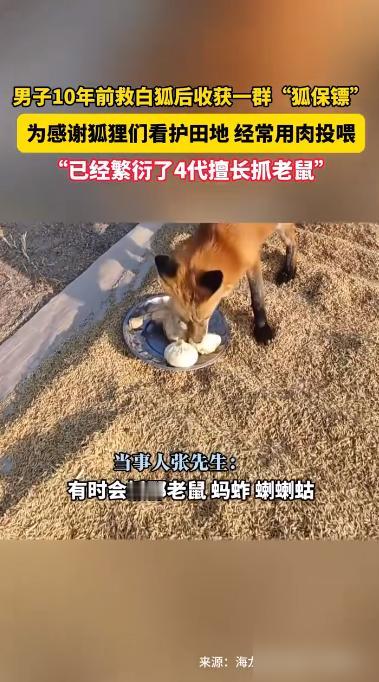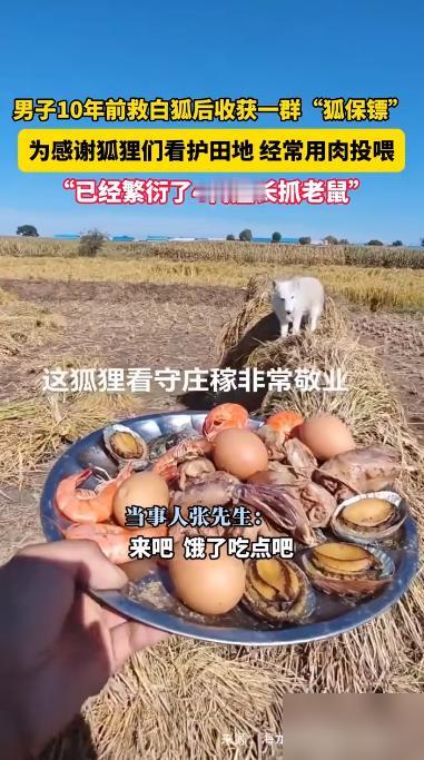 “万物皆有灵!”近日,黑龙江,一男子在10年前救了一只白狐,没想到之后白狐就不肯走了,甚至还生下了4代小狐狸,世代帮他看守稻田,地里再也没有出现老鼠。 这事儿听着像童话,但还真就发生了。一只狐狸能记恩十年,还拖家带口来报恩,确实有点神奇。老一辈总说狐狸通人性,看来不是瞎讲的。 想想看,最开始可能就是一次偶然的救助。男子喂了点吃的,狐狸觉得这人不错,就留下来了。结果它发现稻田里有老鼠,顺手就抓了。这对狐狸来说是顺手的事儿,但对农民来说,可是帮了大忙。 老鼠这种东西,糟蹋粮食特别厉害。狐狸一来,老鼠不敢来了,这比用什么药都管用。生态平衡就是这么奇妙,一环扣一环。 后来狐狸生了小狐狸,一家子都在这儿安家了。男子也挺够意思,天天肉包子、鸡翅喂着。这待遇,估计很多宠物狗都羡慕。狐狸们也算找到了长期饭票,不用在野外挨饿受冻。 现在这一大家子狐狸,成了稻田的专属保安。第四代都上岗了,简直是世袭制的工作。男子每天得做一大盘吃的,这伙食费估计也不少,但他肯定觉得值。 有人说这是上辈子的缘分,有点浪漫化了。其实更可能是动物的一种生存智慧。它知道这里安全,有吃的,所以就定居了。帮看稻田算是互利共赢,动物也懂这个道理。 不过话说回来,能这样和谐相处十年不容易。说明男子对狐狸确实很好,狐狸才愿意一直留下来。动物都很敏感,你要是对它不好,它早就跑了。 现在很多地方人跟野生动物冲突不断,这个事儿倒是给了个启发。有时候不是非要赶尽杀绝,找到共存的办法可能更好。 各位读者你们怎么看?欢迎在评论区讨论。