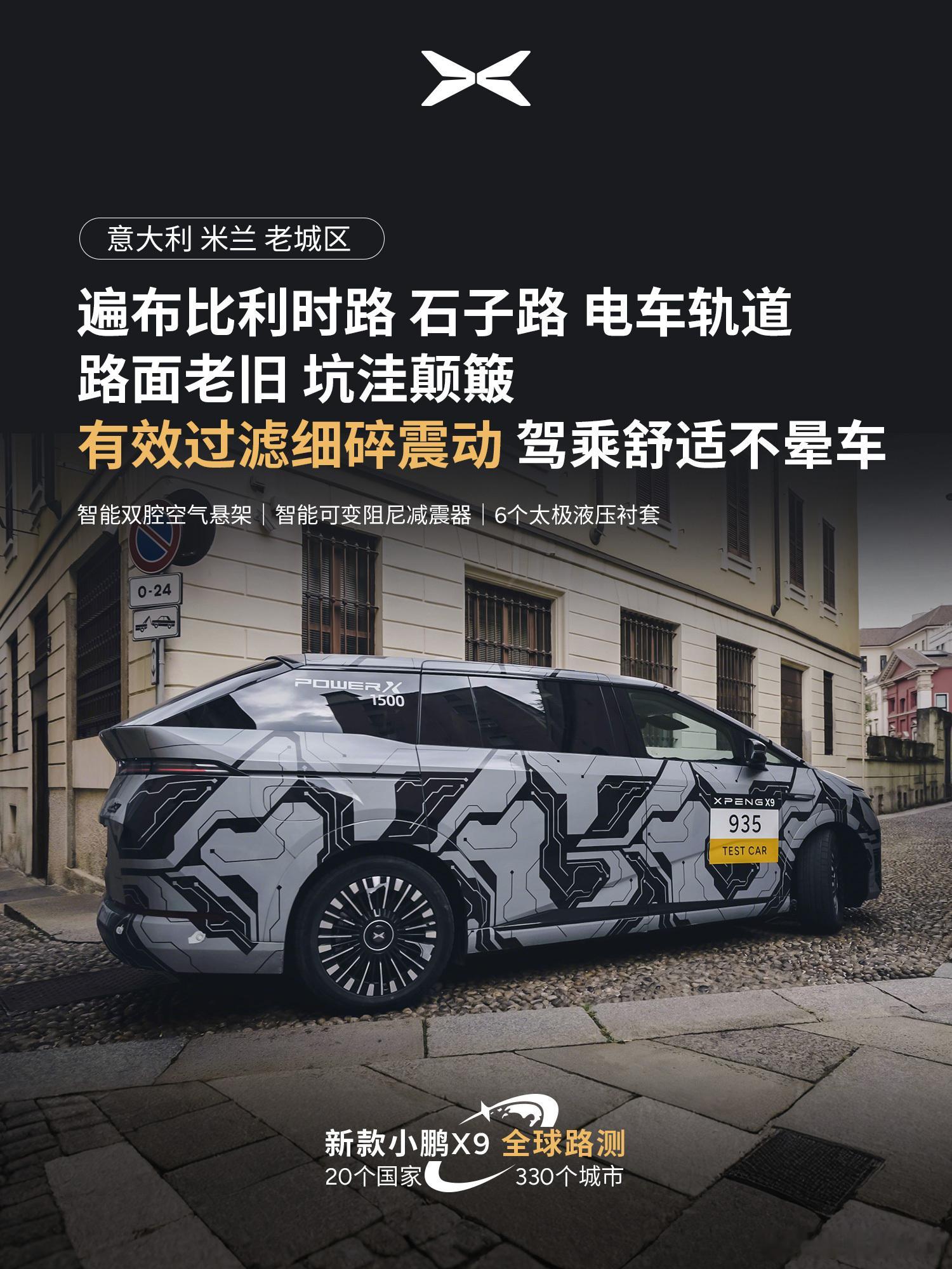何小鹏带队全球路测新款X9小鹏X9米兰老城区窄路灵活胜小车新款小鹏X9全球道路测试持续进行中,在米兰老城区颠簸路段,5.3米车长的新款X9在窄巷轻松穿行,直角弯、急转弯、窄路掉头全都一把过,连侧方停车都丝滑入位。从48道发卡弯到古老街巷,新款X9用实力证明:大七座也能如此灵活!不愧是值得全球家庭信赖的家用大七座MPV!