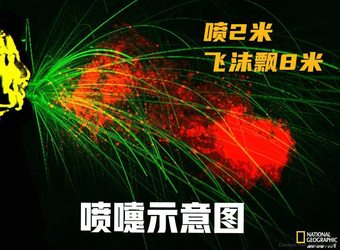 你了解打喷嚏吗? 喷嚏出口时的速度通常在每小时100-180公里之间,换算成秒速为27.8-50米/秒 。 麻省理工学院研究人员,通过高速摄像头记录喷嚏过程,发现打出的喷嚏会像散落在画布上的颜料一样在空气中散布开。 据中国数字科技馆的信息,打喷嚏时液体从嘴里、鼻子里喷出的速度最快可以达到每秒35米,也就是每小时126千米 。 如后图所示,绿色代表较大液滴,其喷射轨迹可达距离打喷嚏者2米远之处。 红色代表由较小液滴组成的高密度液滴“云”,这些小飞沫呈云雾状,飞行距离更可长达8米。 如何正确打喷嚏? 1、打喷嚏前迅速拿出纸巾,完全覆盖口鼻,让飞沫被纸巾吸附,避免直接扩散到空气中。 2、若手边没有纸巾,立即弯曲手臂,用肘部内侧(而非手掌)紧贴口鼻。肘部接触他人或物品的概率低,能减少病菌通过手部传播的风险。 3、打喷嚏时尽量转身避开周围人群,与他人保持至少1米以上距离,避免飞沫直接喷到他人身上或面部。 4、用过的纸巾需立即扔进带盖垃圾桶,不可随意丢弃;用肘部遮挡后,若衣物有明显飞沫,后续可及时清洗或消毒肘部衣物。 5. 做好手部清洁:无论用哪种方式遮挡,打喷嚏后都要用肥皂和流动水洗手至少20秒,或用含酒精的免洗洗手液清洁手部,避免手部沾染飞沫后接触口鼻、眼睛或其他物品。 不看不知道,一看吓一跳,一口喷嚏竟然有这么高的速度,有点小看打喷嚏了。所以,以后打个喷嚏该注意回避了。