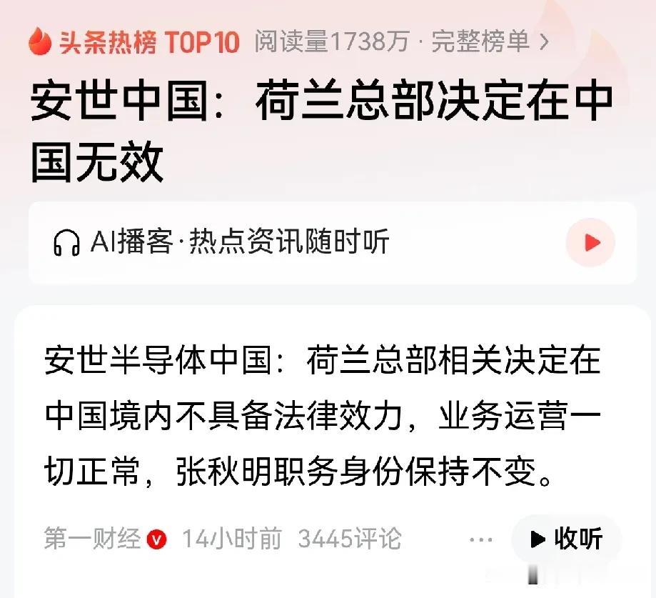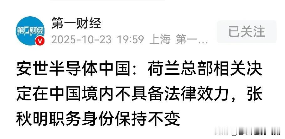 安世半导体恢复在华销售,令荷兰总部暴跳如雷,警告无法保证质量! 10月23日,安世半导体(中国)公司给客户发了一封信,信中明确表示荷兰管理层的发言动机不纯,无端质疑中国工厂的合规性和质量标准,并表示会采取法律手段维权。 这一强硬回应是针对荷兰总部此前向客户发出的警告——荷兰安世半导体称无法再保证来自其中国工厂的芯片质量。安世半导体的中国分公司开始向客户恢复交货,但目前还只限于国内市场,这占据安世半导体50%的规模。 两位知情人士透露,所有销售现在都必须以人民币结算,而此前交易通常使用美元等外币。一位知情人士称,安世半导体中国子公司还指示分销商与客户之间的交易也必须使用人民币。 这一举措显然是为了稳定中国市场供应,并在运营上进一步摆脱对荷兰母公司的依赖。安世中国否认荷兰管理层的质疑,表示产品质量一如既往。安世中国还承诺,如果后续产品供应、生产工艺、技术标准等有变更或调整,公司将按照正常流程与客户提前沟通。 安世中国拥有独立的生产线和本地研发团队,年产各类二极管、晶体管超50亿颗,占集团全球产能的近六成。这么大的盘子,一旦脱离总部监控,自然让荷兰方面如坐针毡。 所以,他们一边发警告,一边已经在东南亚物色新的封装测试伙伴,计划将部分关键工序转移出去,以降低对中国单一供应链的依赖。 如果能物色到新的封装测试伙伴,荷兰根本不会等到今天了,况且东南亚的这些封装测试伙伴基本也都是中企。这场闹剧的背后,其实是一场围绕芯片产业链控制权的激烈博弈。 安世半导体作为全球功率半导体领域的巨头,其中国工厂的重要性不言而喻。中国市场不仅贡献了一半的销售额,更承担了近六成的产能,是安世半导体全球业务的“压舱石”。 荷兰总部此时突然质疑中国工厂的质量,显然不是出于对产品品质的担忧,而是想通过这种方式重新掌控中国子公司的运营,阻止其脱离自己的掌控。 可荷兰总部的算盘显然打错了。安世中国早已不是当年那个依赖总部技术和管理的“小弟”,经过多年的发展,中国子公司已经建立起了独立的研发、生产和销售体系。 从二极管到晶体管,从设计到封装测试,每一个环节都有成熟的团队和技术支撑。年产50亿颗的产能,不仅满足了国内市场的需求,还为全球其他地区提供了大量产品。这样的实力,岂是荷兰总部几句“质量质疑”就能动摇的? 更让荷兰总部头疼的是,此前安世半导体的全球交易大多以美元结算,荷兰总部可以通过财务管控间接影响中国子公司的运营。如今改用人民币结算,相当于切断了荷兰总部通过货币渠道干预中国业务的途径,这怎能不让荷兰总部暴跳如雷? 荷兰总部试图在东南亚寻找新的封装测试伙伴,以降低对中国供应链的依赖,这一想法更是不切实际。东南亚的封装测试产业虽然发展迅速,但核心技术和主要产能仍掌握在中企手中。 无论是马来西亚的封测厂,还是泰国的生产线,背后都有中国企业的身影。荷兰总部想绕过中国企业在东南亚建立新的供应链,无异于缘木求鱼。 退一步说,就算荷兰总部真的找到了所谓的“新伙伴”,新工厂的建设、设备的调试、团队的组建都需要时间,短期内根本无法替代中国工厂的产能。等到东南亚的工厂能够正常运转,安世中国恐怕早已在国内市场站稳脚跟,甚至开拓了更多的海外市场。 从客户的角度来看,他们更愿意相信安世中国的产品质量。毕竟,多年来中国工厂一直为他们提供稳定、高质量的芯片,双方已经建立起了深厚的信任。荷兰总部突然跳出来质疑质量,反而让客户觉得“动机不纯”。 这场博弈也给其他跨国企业敲响了警钟。在全球化的今天,子公司的本地化发展已经成为一种趋势。跨国企业如果还想用过去那种“总部掌控一切”的模式来管理子公司,恐怕会越来越难。 尤其是在中国这样庞大且充满活力的市场,子公司往往能够凭借本地优势快速发展,形成独立的竞争力。此时,总部如果不能正视子公司的发展需求,反而试图通过强硬手段压制,最终只会导致子公司的背离,损害整个集团的利益。 安世中国此次的强硬回应,不仅是为了维护自身的权益,更是中国芯片企业实力不断提升的体现。从依赖进口到自主研发,从被动接受管理到主动掌控运营,中国芯片企业正在一步步打破国外企业的垄断,在全球产业链中占据更加重要的位置。 荷兰总部的气急败坏,恰恰证明了中国芯片企业的发展已经让他们感到了威胁。未来,随着中国芯片技术的不断进步和产业链的不断完善,类似安世中国这样的案例可能会越来越多。 跨国企业如果不想被时代淘汰,就必须学会尊重子公司的本地化发展,与本地市场实现共赢。而对于中国企业来说,这既是机遇也是挑战。只有不断提升自身的技术实力和运营能力,才能在全球竞争中立于不败之地,真正掌握产业链的话语权。