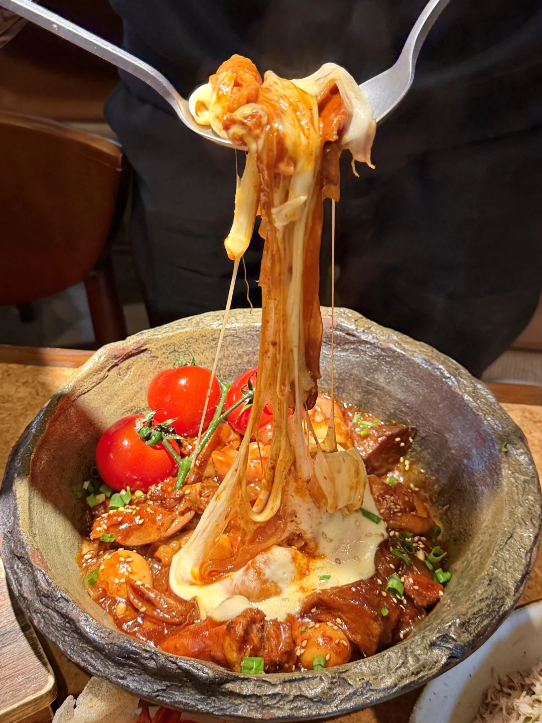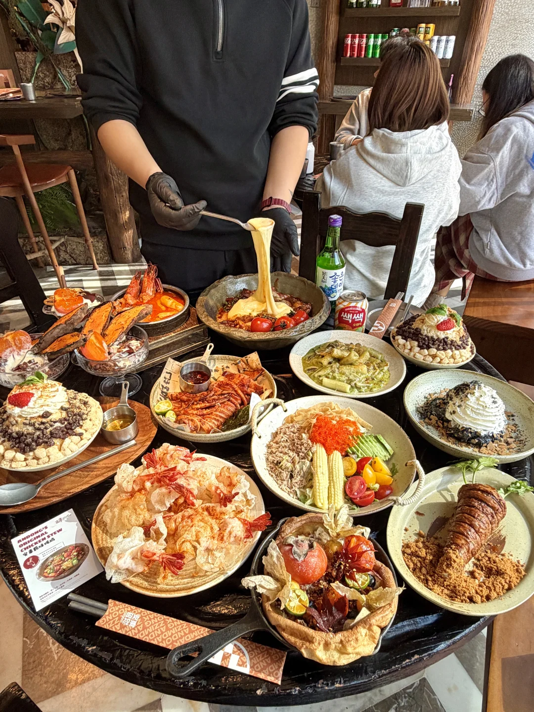 想给全青岛人安利这家!!! 真的不是网红店😭就在万象城楼上的宝藏漂亮饭!来吃的大多数都是本地回头客!! 不管是一人食还是情侣闺蜜约会都很适合……氛围好好!柿子松饼、柿子冰淇淋红薯、柿子巴菲杯……真的精致又好吃! 还有芝士炖鸡、春卷炸虾、29的黑芝麻慕斯。。。单价不贵,学生党也吃得起!! 定位到📍安東·Korean Bistro(万象城店)