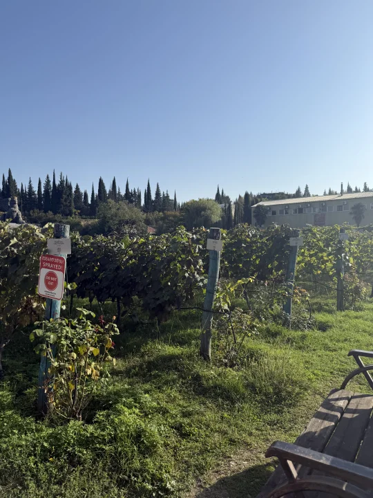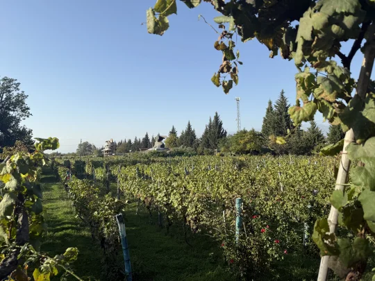 第三楼图11-图14 Shumi Winery Kakheti 这家是在另外一个产区 —泰拉维,首先进入大门就可以看到葡萄藤,里面种植了几百个品种,可以拍照📷,它家有自己的酒厂、餐厅、酒窑,参观需要酒厂需要预约,它家有适合游客的套餐,💰30-80拉里,可以喝到几杯不同款的酒 ,不需要门票,它们家有自己特色的酒比如:Chacha、Zigu是在外面买不到的,可以在酒庄里面购买整瓶,这家也是强烈推荐👍