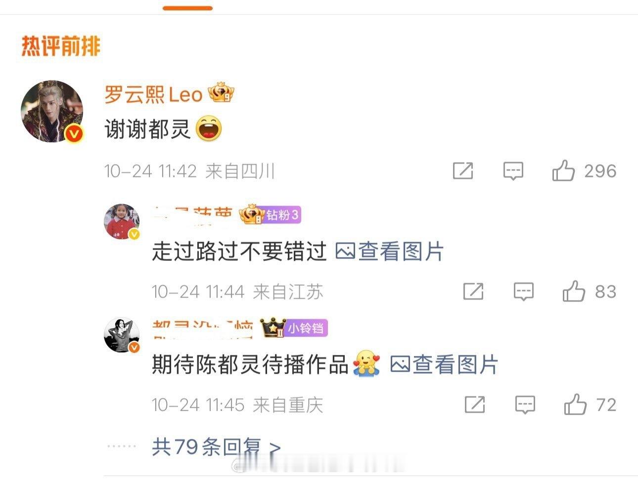 陈都灵也宣传罗云熙的水龙吟 了,罗云熙在评论里感谢。看来两个人关系不错 水龙吟开