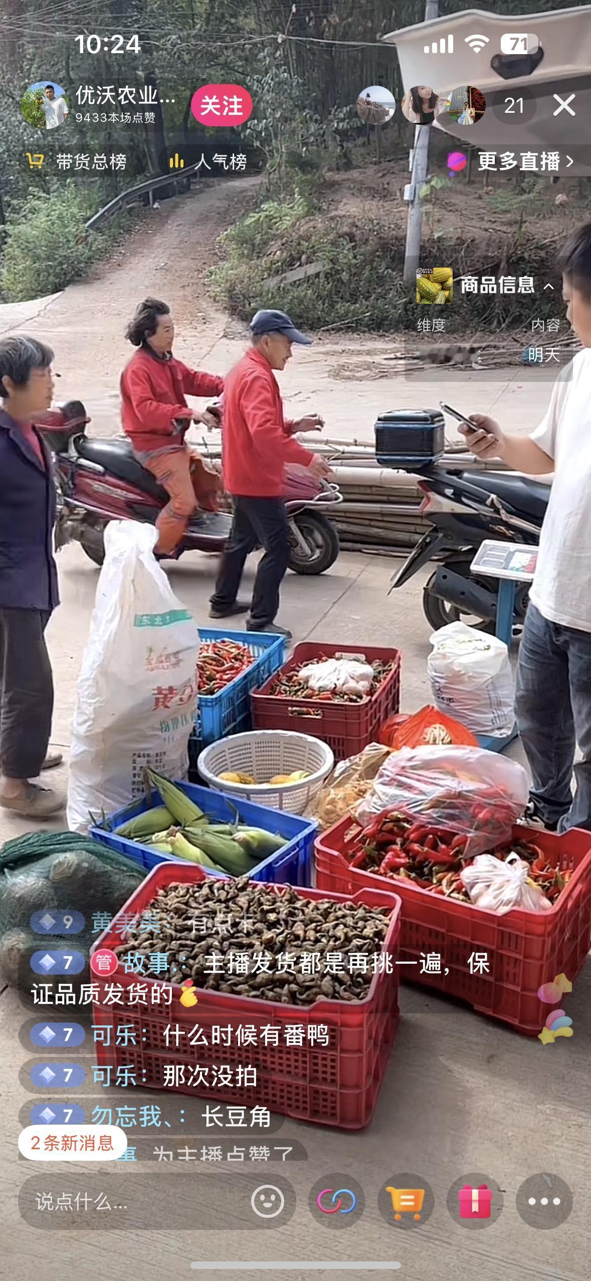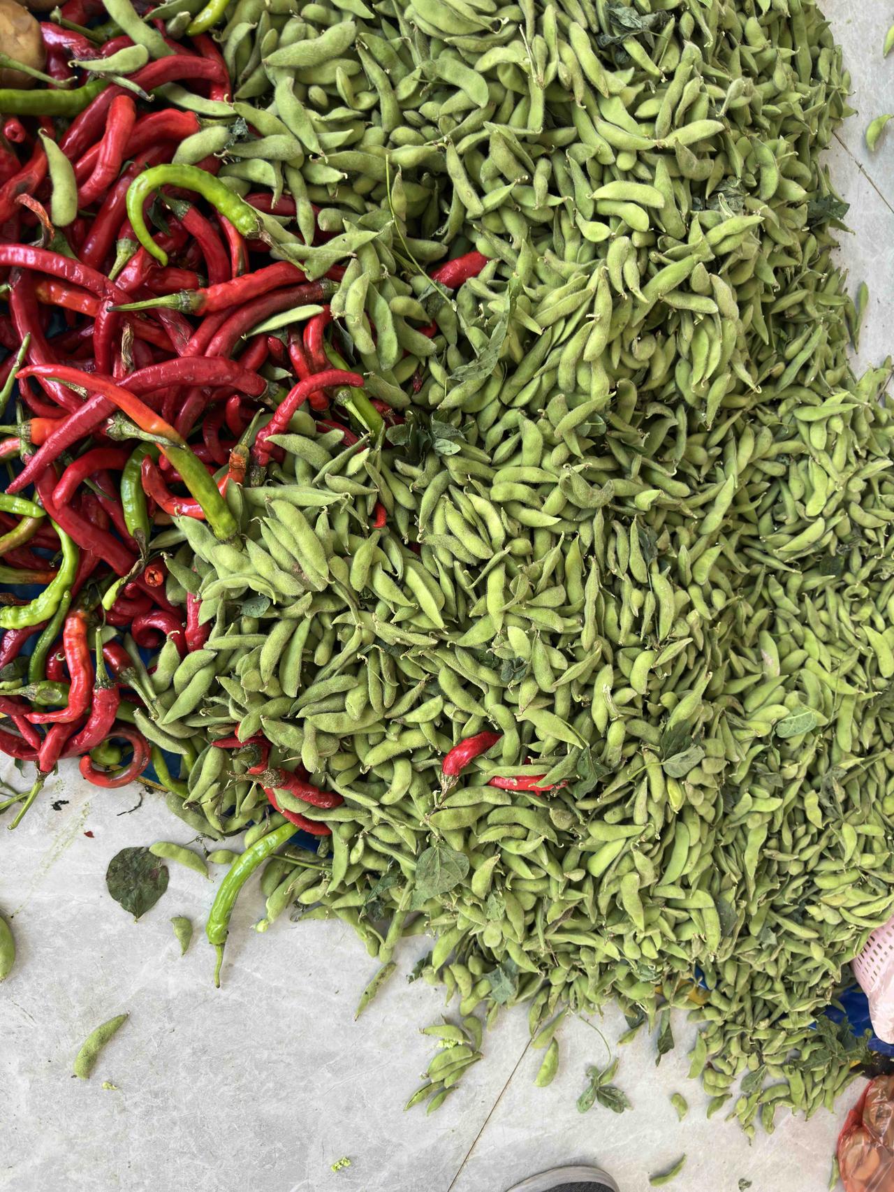 在直播间购买本地的新鲜农产品,价格贵在运费,实在是划不来! 霜降已过,制作江南美味霉酱豆的好时节! 原材料包括本土红辣椒、新鲜青豆、新鲜嫩姜。 为了准备这些食材,从昨天到今天,我跑遍了县城之内的小农贸市场,腿都差点跑断了,结果怎么着?一无所获,空手而归!几个农贸市场里,都只看到我看不上眼的不漂亮的红辣椒和青豆,红辣椒的价格是¥7一斤,青豆荚的价格是¥4一斤。 回家后,我想着看看抖音直播间有没有漂亮的红辣椒,正巧,一位县城的主播正驱车奔向我老家那个山区收购红辣椒,手机上陪伴了他一路行程,很快到达目的地,喇叭一响,他之前联系好的农户纷纷拿出了红辣椒等土特产,哇塞,好漂亮好新鲜的红辣椒,农户问询主播辣椒什么价格?主播悄悄地说了一个字,“4”,好有意思,直播间的我们都懂了:主播收购红辣椒的价格是¥4一斤。我赶紧问主播:本地人购买是否可以自取?他却让我私信他,我马上关注他,可是私信不了。一看他后台链接,有一个红辣椒的单子,¥19.8,领券后¥14.8,我问他这是几斤的单子,他说2斤。哇塞,这快递的运费也太贵了吧!关键是,我本地人购买本地特产,他快递还要先运到市里去,然后再到县城的我家,原本很新鲜的红辣椒运来运去都会变得不那么新鲜了,还是算了吧,果断取关主播退出直播间。 午时,小电车师傅载着我和母亲去医院,我知道他在乡下老家种了辣椒,一直都是供应饭店的,我就问他现在还有没有红辣椒,他果断地回答有,至于价格,他说卖给饭店是六元钱一斤,卖给我可以便宜点。我说,你卖给别人多少卖给我就多少吧,不会在意这一点点钱,我就买七八斤红辣椒、两三斤青辣椒。另外他说他家也种了生姜,叫他给我买一斤,至于价格,随他吧。只可惜他家没有种上青豆,我明天去农贸市场只需买上青豆就行了。