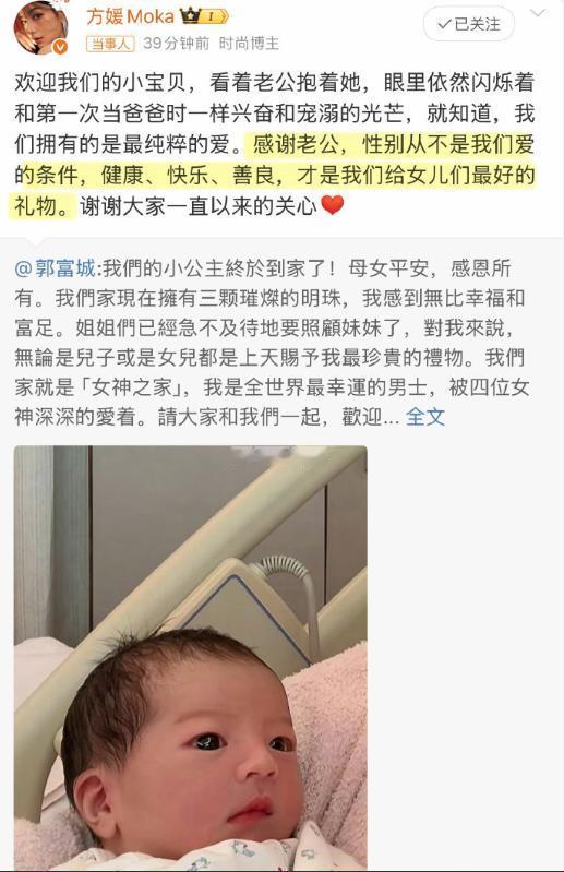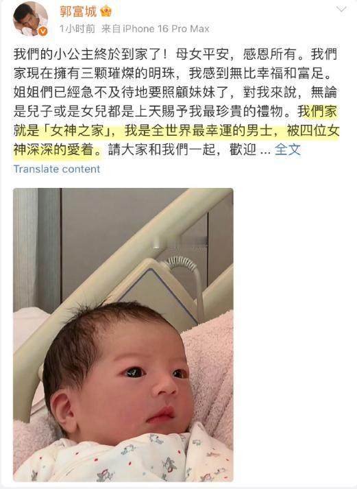 韩庚官宣“好”消息,天王郭富城连生三女又被带上热搜,网友表示:想要儿子就大大方方地承认多好? 最近娱乐圈也是好消息不断啊,前有郭富城宣布自己第三个女儿出生,今天韩庚也宣布自己的“好”消息,二胎出生。 这个“好”字就很有意思了,2022年韩庚跟卢靖姗生了大女儿,后面两个人一直备孕,这一次特意点明是“好”消息,看来二胎生的是儿子,这下韩庚可真是儿女双全了。 相比较在郭富城那边话题下的儿女之争,韩庚这边路人缘要好太多,看得出来很多网友都在祝贺。 其实我觉得,这就是明星能不能跟上时代的问题。 郭富城那个年代的明星,在网上说话发言都比较含蓄,他们两口子生了三个女儿,明显就是缺个儿子,但是偏偏要在发言的时候强调不看性别,就是会让观众觉得“欲盖弥彰”。 其实像他们这样的明星家庭,想生儿子大家并不会有什么排斥,他们手里的资源够多,也不会出现儿女分配不均的问题,想要儿女双全就大大方方承认就行了,遮遮掩掩的反而败了路人缘。 现在除非郭富城夫妻以后真不生了,不然他们如果还要生四胎,就是在打自己脸了,到时候网友肯定要问:你不是不在乎性别吗?怎么还继续生呢? 现在的娱乐圈环境就是这样,你越真实,反而越能让观众接受,看得出来韩庚现在已经很通透了,以后发展肯定也能越来越好。 你怎么看待这件事?明星二胎想要儿子到底应该怎么说?
