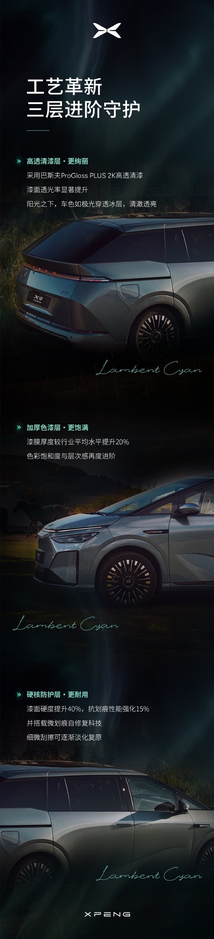 小鹏X9增程版车型发布新车身配色—极光青