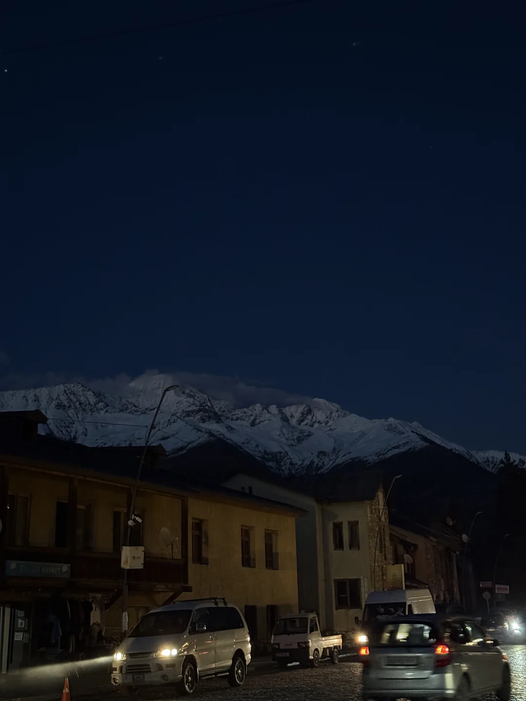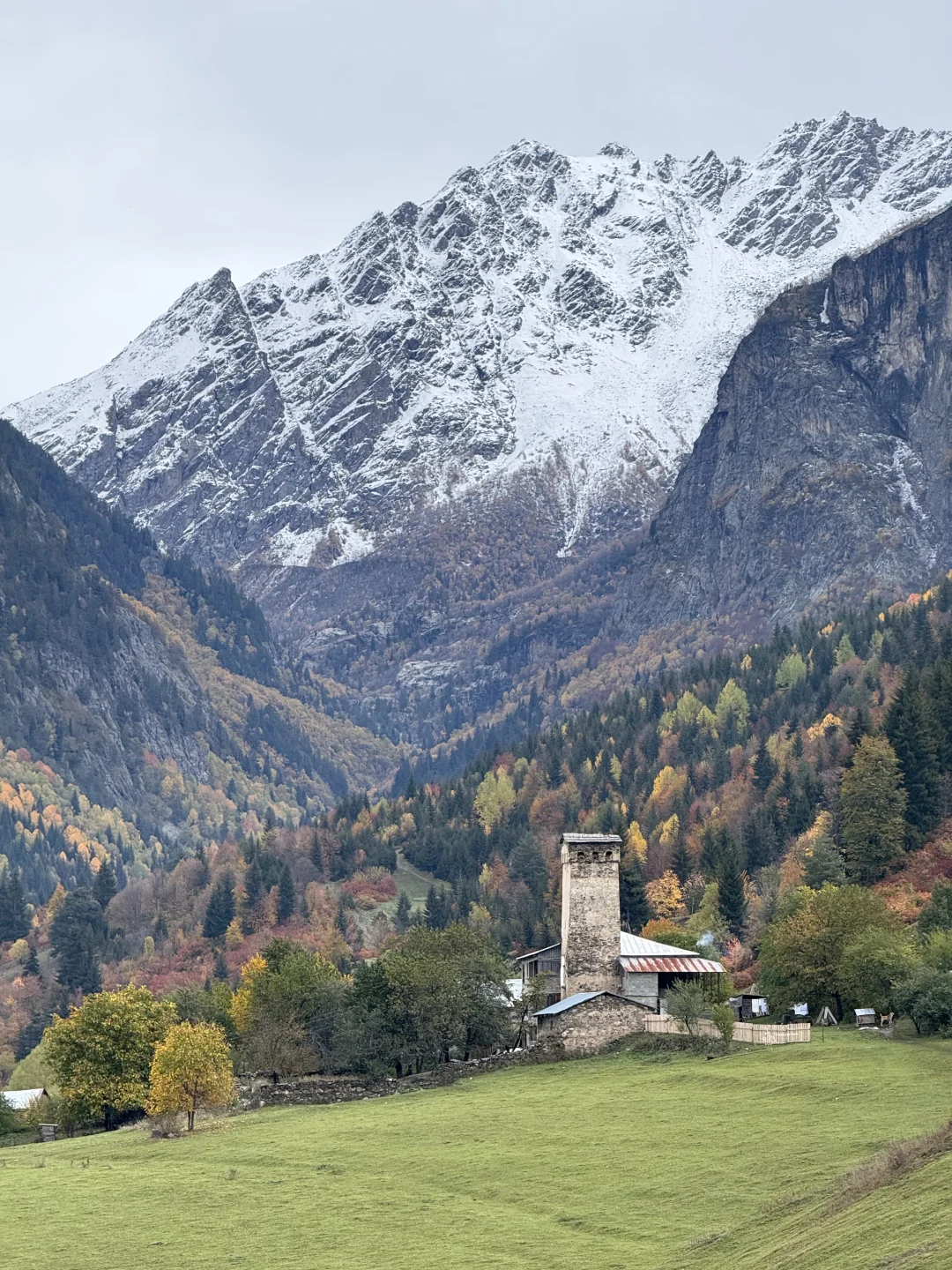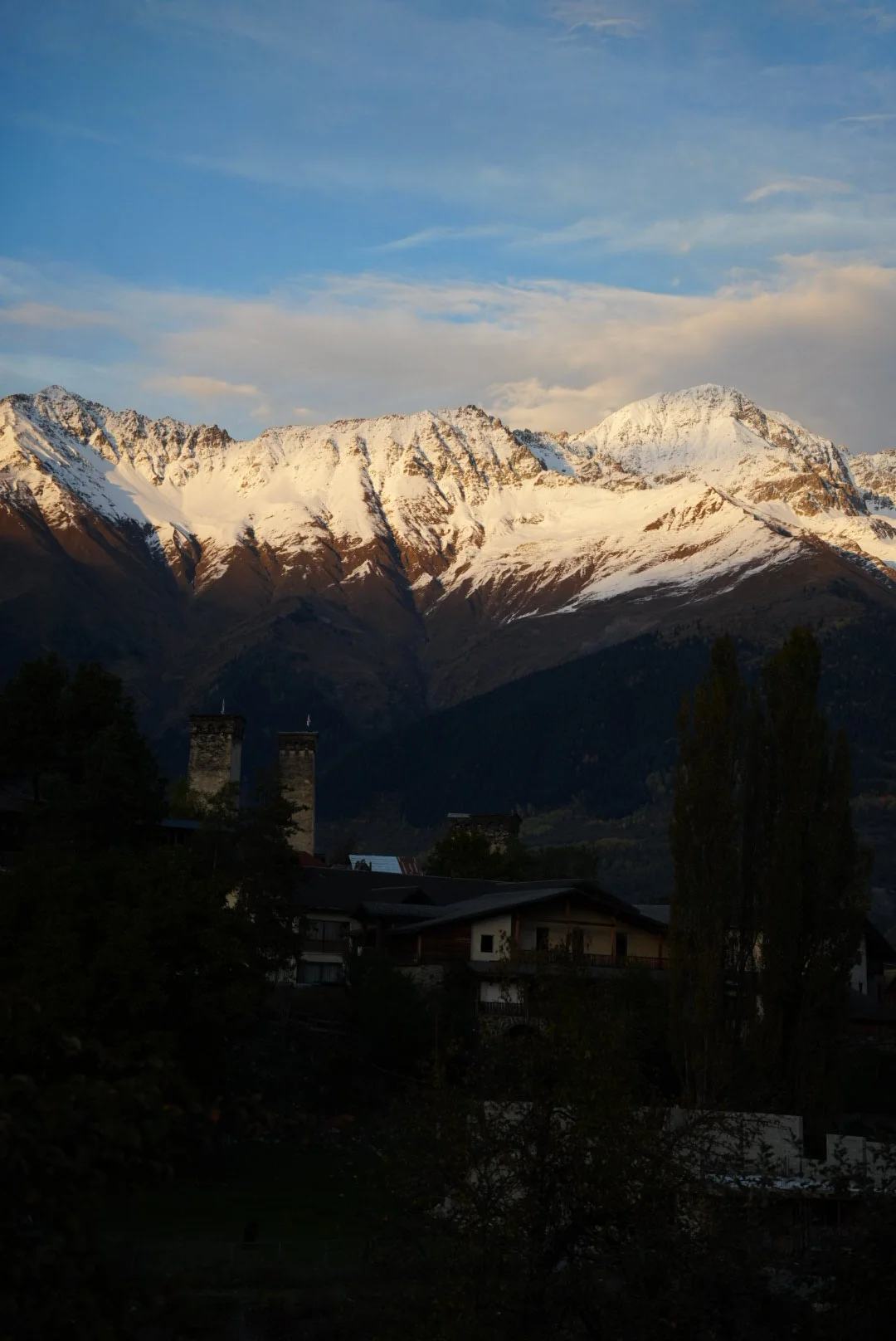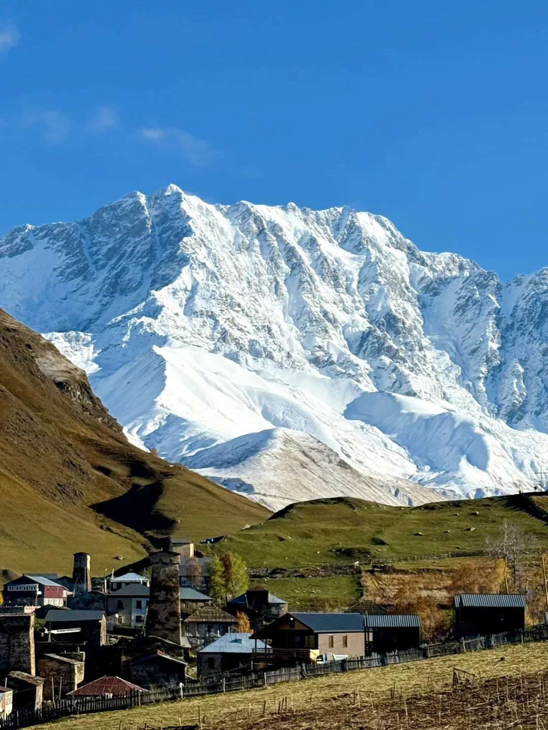 📌从lprali可以直接拼车到Ushguli(人均💰40拉里),在Ushguli住一晚,早上可以看到👀图1️⃣图2️⃣,雪山🏔️更加震撼,仿佛近在咫尺,可以从UShguli拼车(人均💰50拉里)到Mestia(梅斯蒂亚这个小镇很舒服可以待几天,住宿推荐Mushkudiani Manor,人均💰20拉里,关键有一个公共厨房可以做饭🍳,阳台可以看到雪山,老板家有一个特别漂亮的花园,可以跟老板一起摘苹果、核桃,别样的体验,镇上有🈶一部由本地人出镜的电影🎬“De De”翻译过来是妈妈的意思,影片讲述50年代,女性反抗传统故事,怎么说呢,剧情有点扯,不过可以了解一下斯万季涅地区的传统历史,每天有五场💰20拉里一个人,我们来的时候就三个人基本被包场了,跟老板谈价到50拉里三个人。