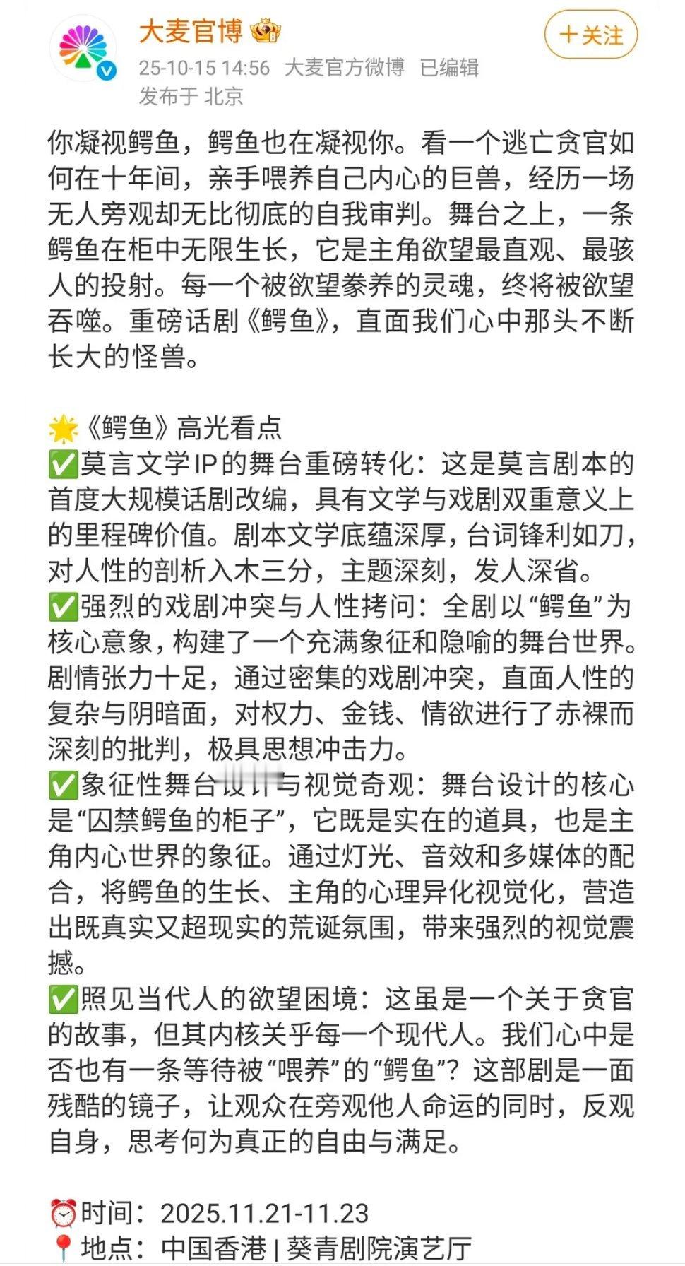 莫言真不愧是魔幻现实主义大师吧,新话剧《鳄鱼》🐊看一个逃亡贪guan如何喂养心中巨兽……