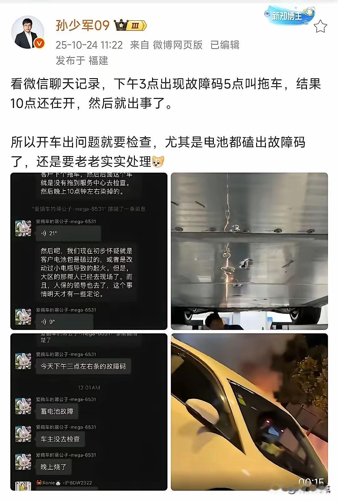 理想MEGA自燃破案了! 2025年10月23日晚,上海徐汇区漕河泾的十字路口,一辆正常行驶的理想MEGA在等待红灯后缓缓起步后自燃。 随后,理想官方回应,事故发生,车门顺利打开,驾驶员和全体乘客全部安全离开。理想官方并未对起火原因进行披露。 今天,微博博主孙少军声称该MEGA自燃以前,曾经磕碰过发生故障码,5点客服给故障下单一个拖车,结果车主不予理会,晚十点电池爆燃。 理想mega自燃