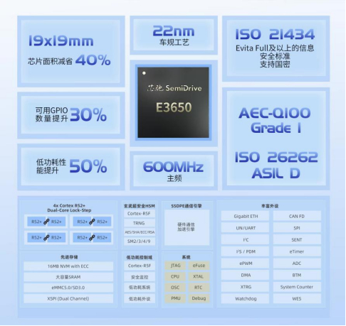 注意看,E3650是芯驰首款打通了智能汽车区域控制器+VMC底盘域控+智驾/智舱域控+动力域控的车规级MCU。