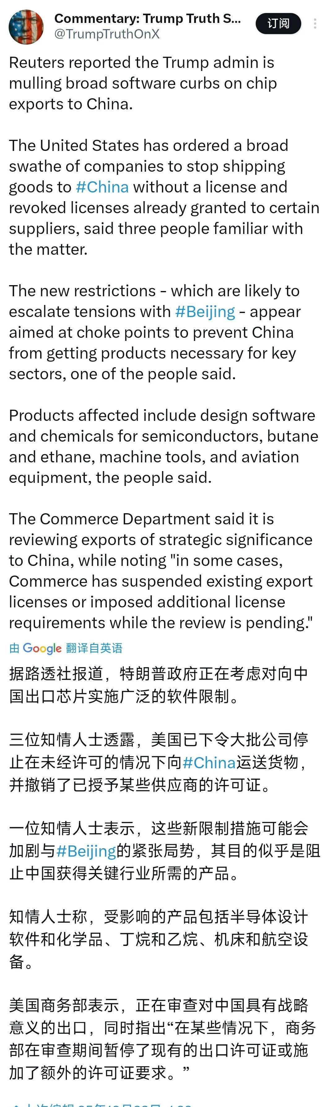 据路透社报道:特朗普政府正在考虑对向中国出口芯片实施广泛的软件限制,这些新限制措施可能会加剧与北京的紧张局势。 芯片被我们稀土捅了一刀,然后再自己捅自家软件一刀。软件限制,这就是鼓励公开使用盗版,也不怕被告! 一边制裁扼制打压中国,一边想从中国拿到稀土,这种可能性几乎为零。全面开源的年代,这种限制,只会让中国放弃各类开源协议。一方面中国开发者不再作开源贡献,一方面,中国不再支付商用费用! 西方已经和俄罗斯彻底闹翻,失去了俄罗斯的廉价能源,如果再和中国彻底闹翻,失去了中国的廉价工业产品,欧美只会自取灭亡!