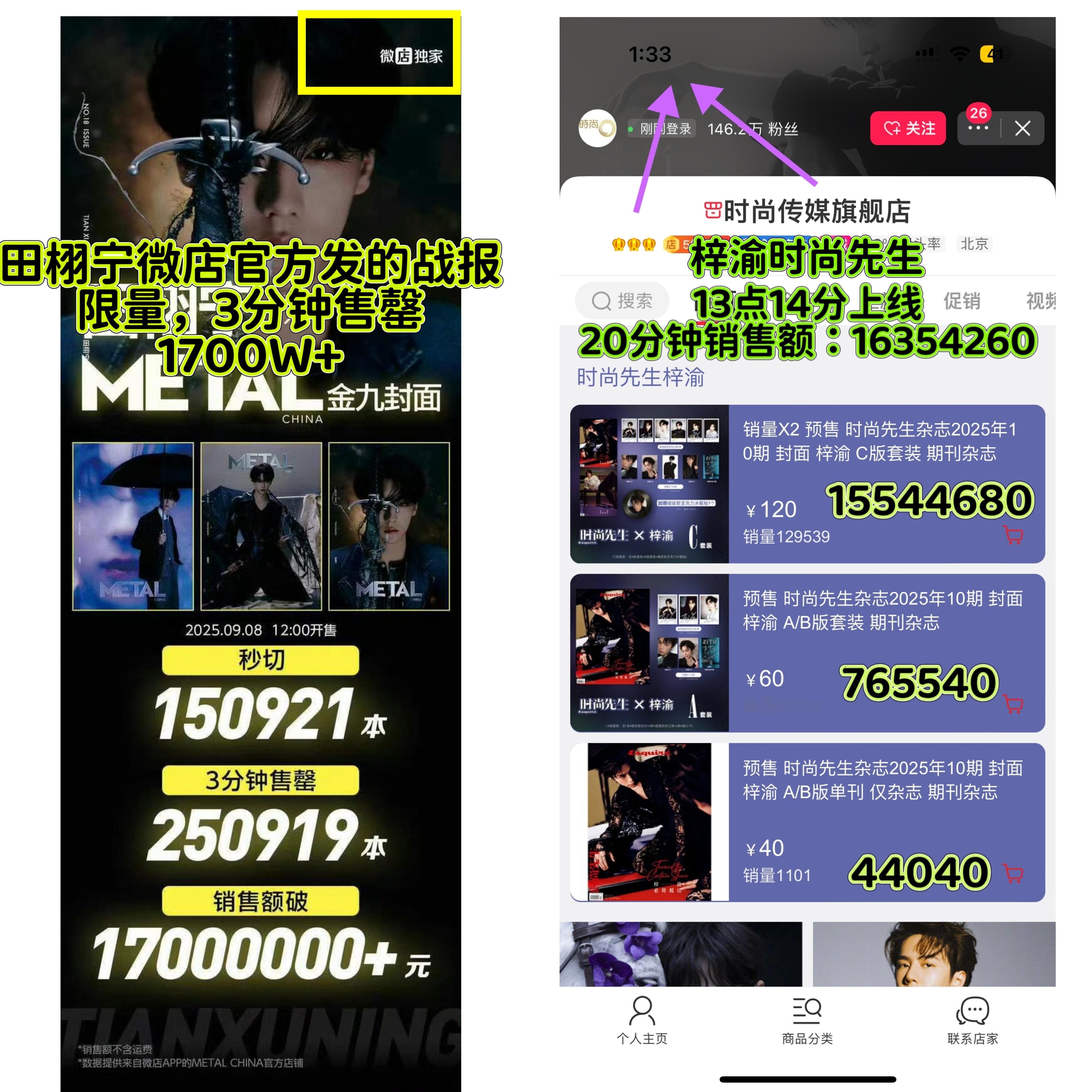 梓渝时尚先生上线20分钟销售额被田栩宁metal上线3分钟秒了(txn还是限量...不限量会秒的更夸张...