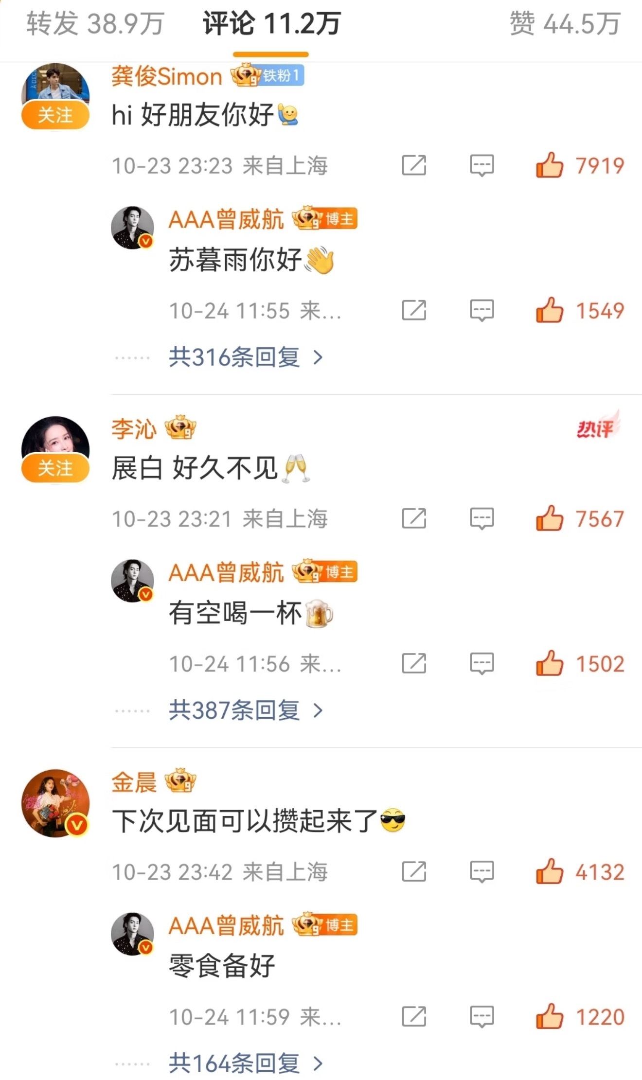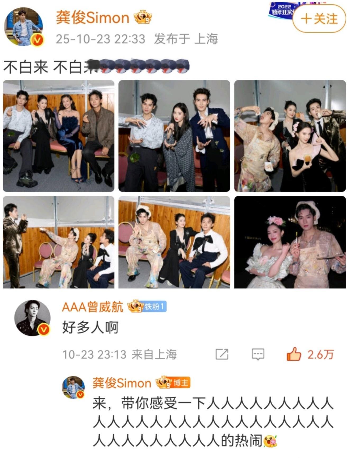 内娱主理人来了,一个盛典可给这几位忙坏了,尤其是曾舜晞,红毯合照嘎嘎聊天,发完wb到处回复,回完你的回你的,回完你的回你的(曾舜晞鸡排哥版),线上线下反复社交哈哈哈!!