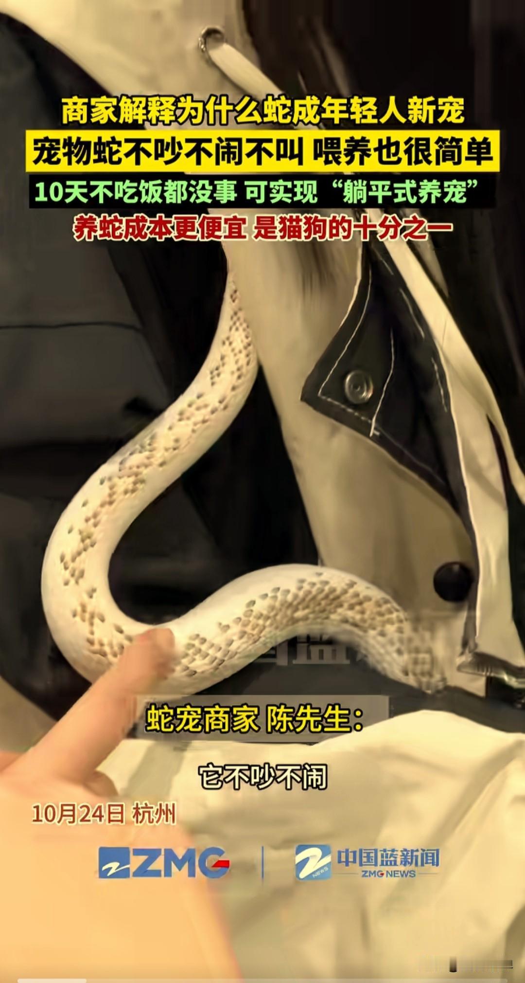 现在蛇竟然成了年轻人新宠了,宠物蛇不吵不闹,也不像猫狗一样到处掉毛,需要打理,而且喂养也简单,成本只需养猫狗的十分之一。 宠物店主陈先生说,现在00后都喜欢养蛇,相对于猫狗来说,养蛇一个月成本30块钱左右,而养猫和狗一个月要花费300块钱左右。 只需5-7天喂养一次,可以实现躺平式喂养,十天半个月之内,只要有吃的喝的就不会有事情。 粪便蛇 粪便蛇 忘语宠物蛇 蛇饲养指南 大学生养蛇 养蛇宠 养蛇好处 三养蛇