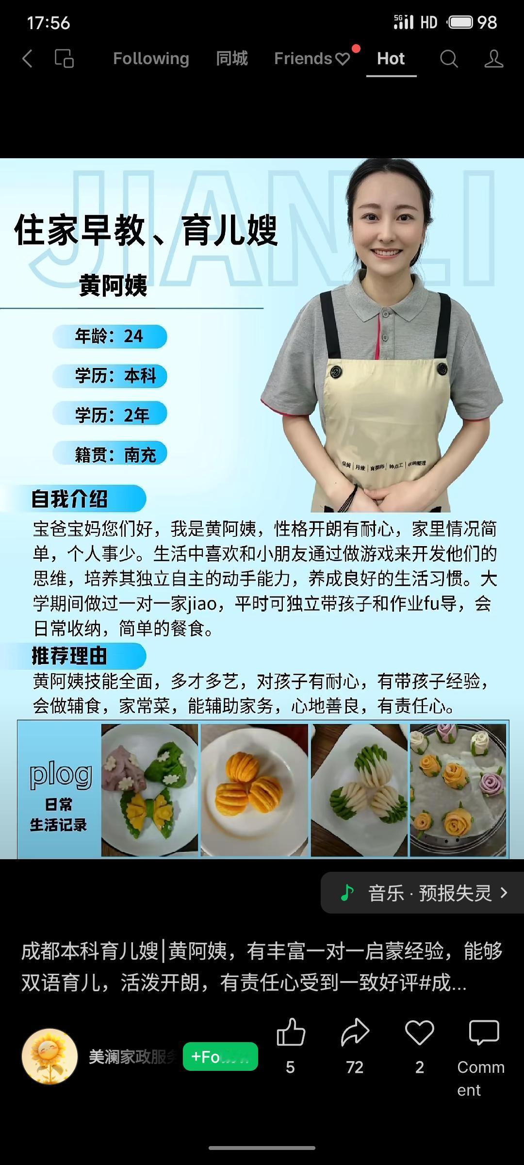 这位黄阿姨,本科双语启蒙、游戏开发思维,技能表比我的简历还丰富。现在高端保姆都这么卷了吗?感觉她不是来带娃,是来给家长开眼界啊!