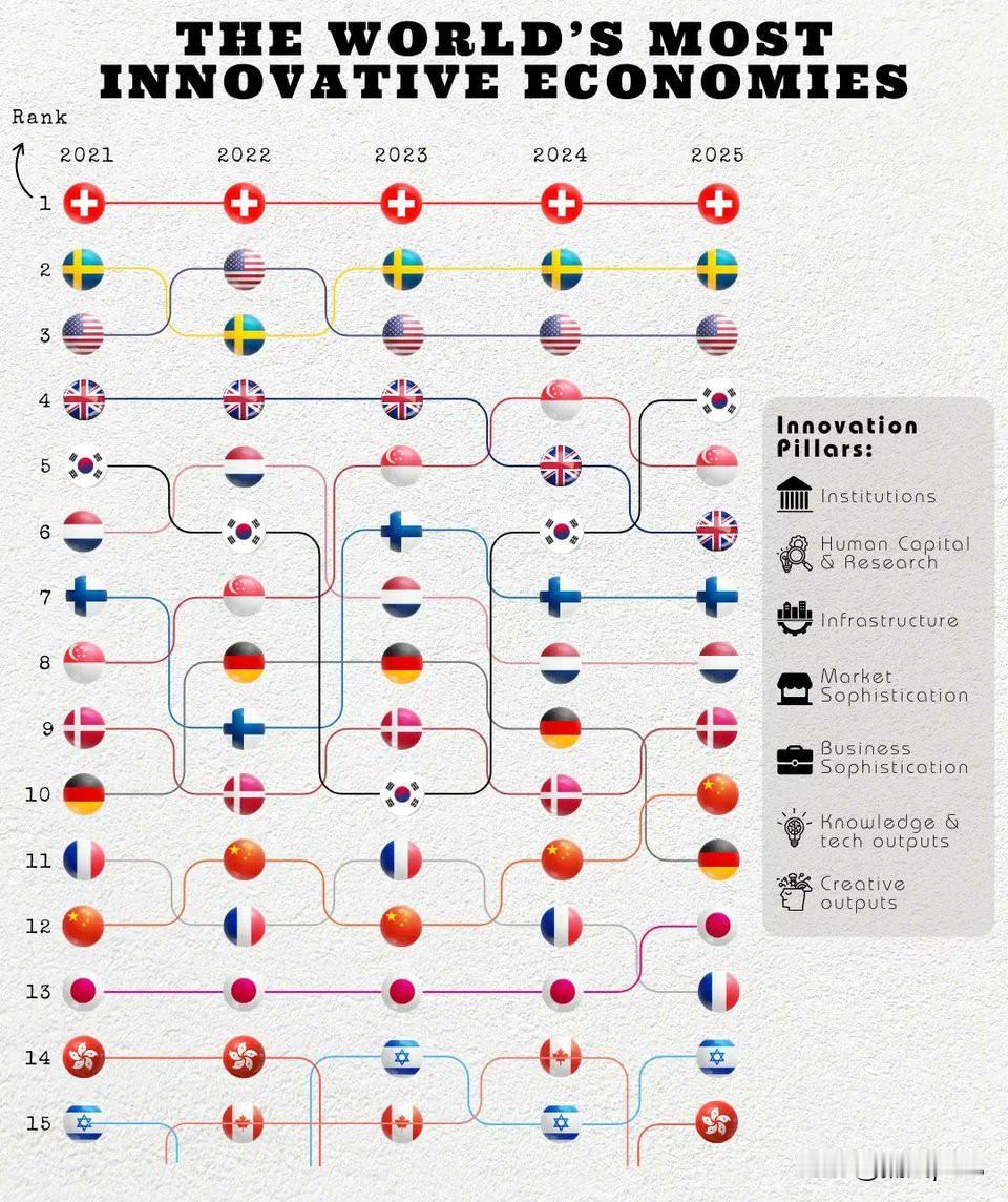 中国进入全世界创新指数前十名,排名第10。这是巨大成就。其他的前十名都是发达经济体。或者说,前33名里面就只有中国一个发展中经济体。 从这个角度来说,中国的发展已经接近发达国家水平了。全球创新指数是一个综合的指标,包括教育、基础设施、市场成熟度、商业成熟度、科技转换、创新产出等多个方面。 该榜单评估全球133个经济体。排名前列的,无一例外是发达经济体。中国进入了前十名,超过了德国、日本、法国、以色列。 中国也是发展中经济体里面排名最高的。只要看看其他发展中经济体的排名,就知道中国的实力了。 10、中国 34、马来西亚 38、印度 43、土耳其 44、越南 45、泰国 50、菲律宾 仅有7个发展中经济体进入前50名,而且这已经是发展中经济体的顶尖水平了。 马来西亚、印度分别排名第34、第38。不是说他们实力有多强,而是发达经济体基本上排完了。