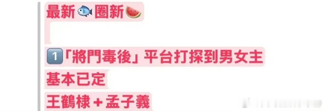 《将门毒后》🫓最新消息!网传主演暂定王鹤棣,孟子义,期待值如何?