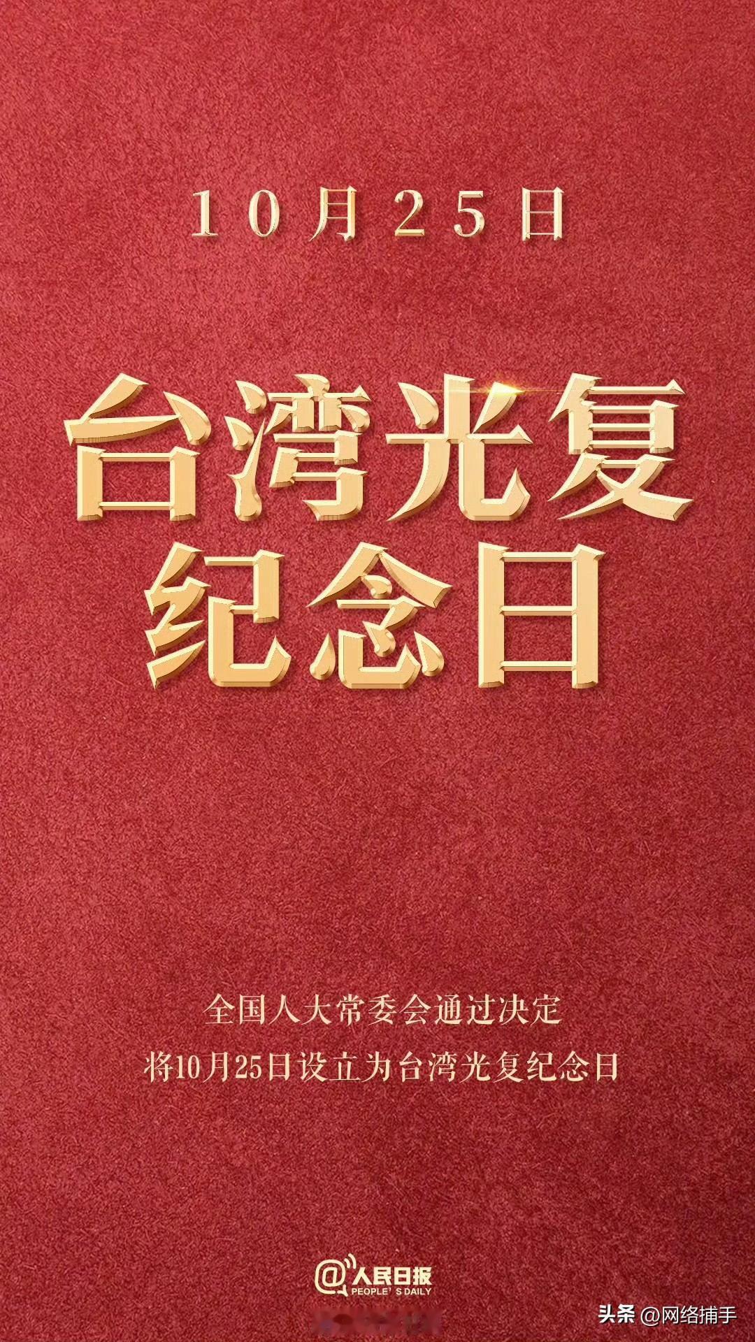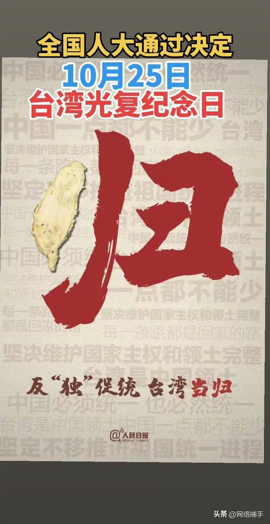 快看!国内时政头条消息! 全国人大常委会通过决定,将10月25日设立为台湾光复纪念日