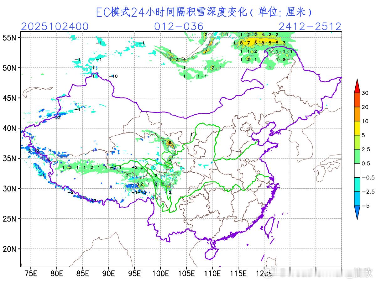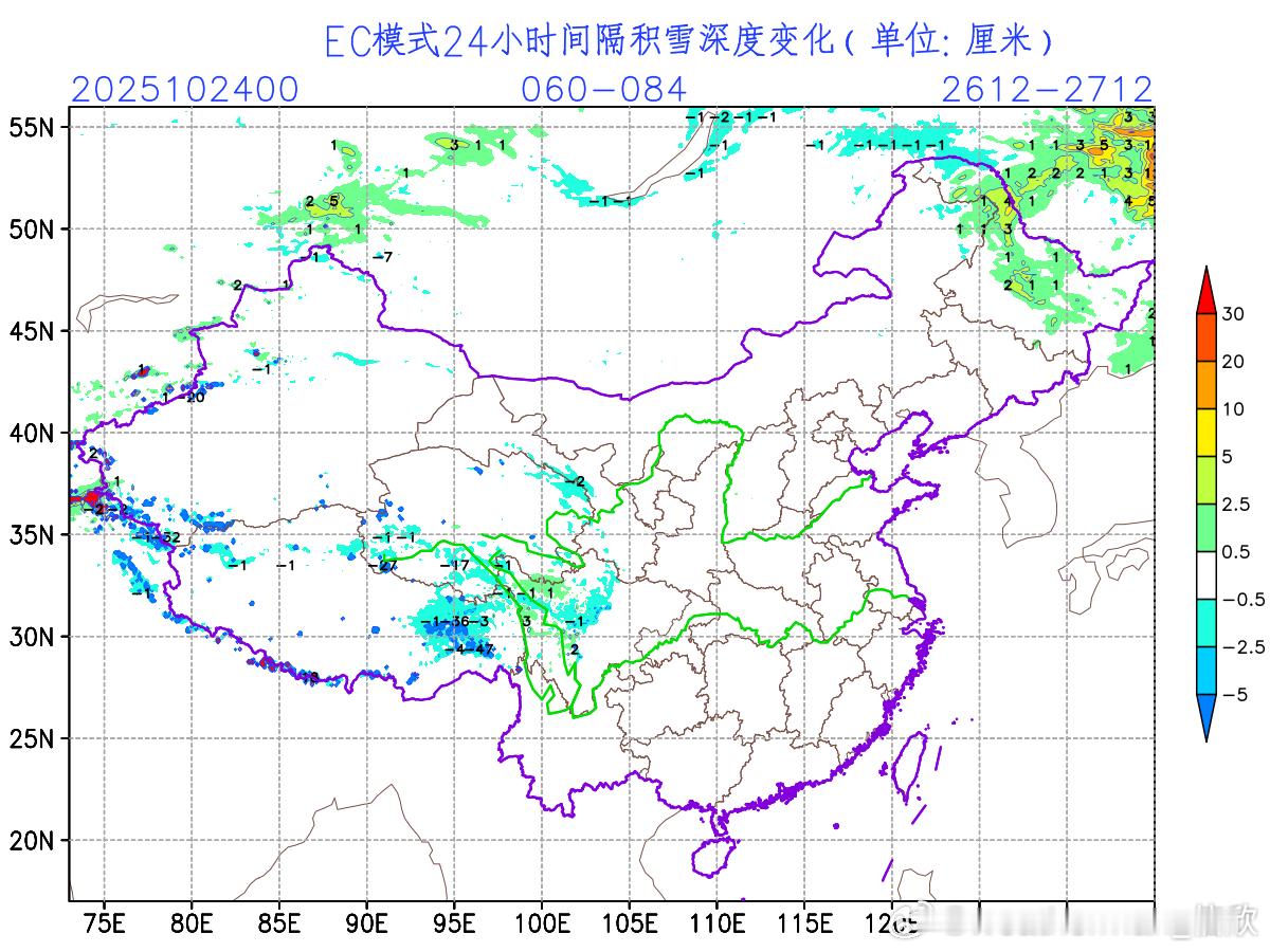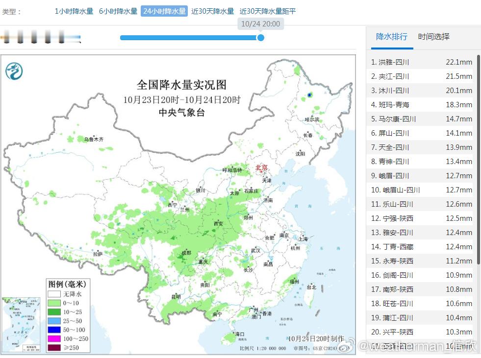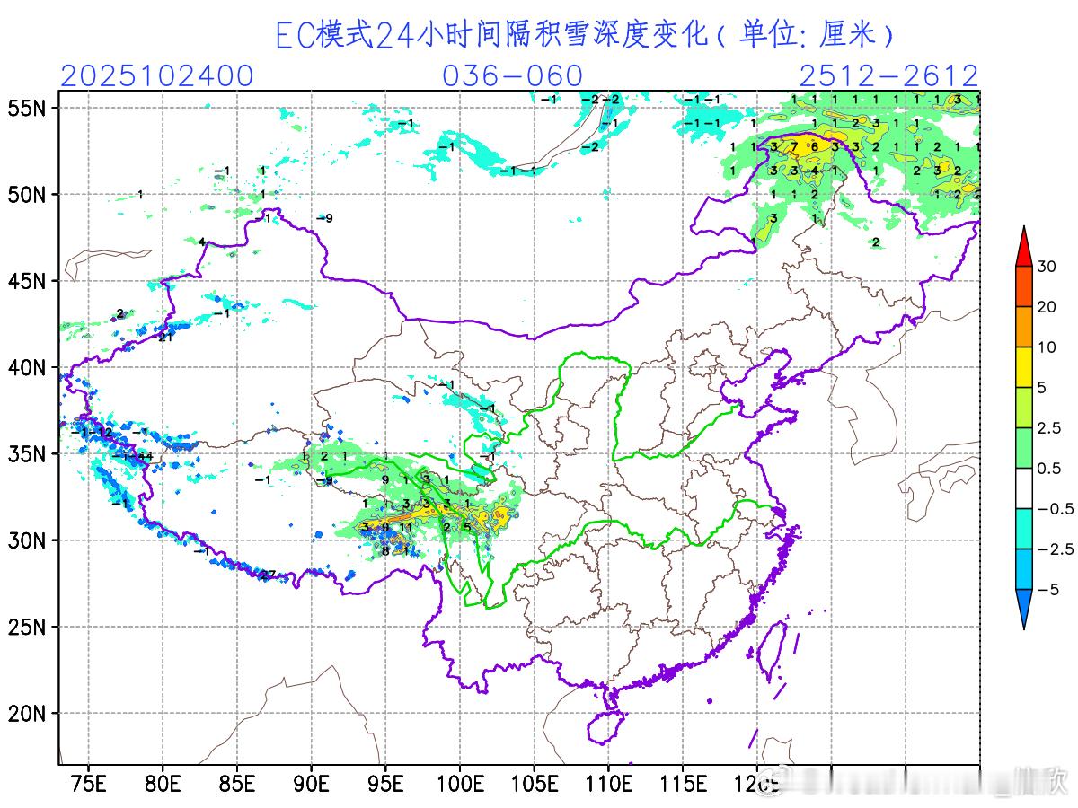 预计10月24日20时至25日20时,内蒙古东北部、黑龙江西北部、西藏北部和东部、青海东部和南部、甘肃中部和南部、川西高原北部等地部分地区有小到中雪或雨夹雪,其中,青海东部等地部分地区有大到暴雪,局地大暴雪(20~22毫米)。西藏东南部、四川中南部、重庆西部、云南东北部、台湾岛等地部分地区有中到大雨,其中,台湾岛东北部等地局地有暴雨(50~60毫米)。