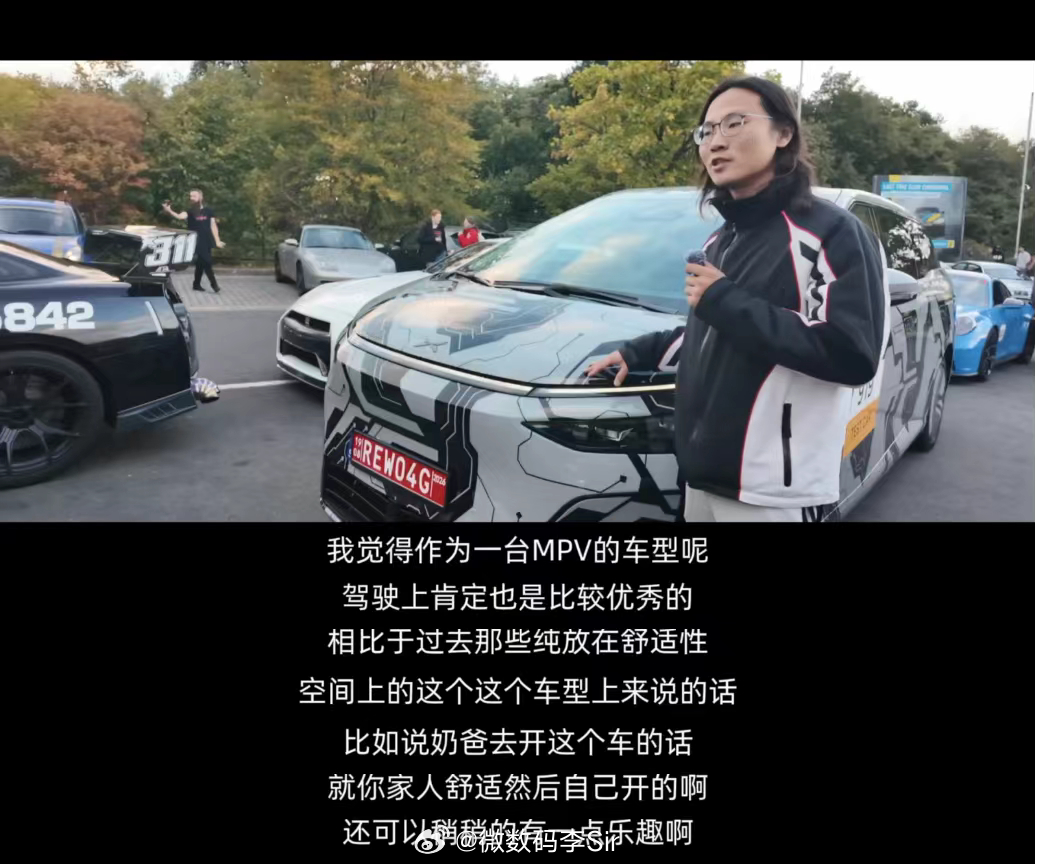 车手段老板平常经常在纽北赛道测试各种车辆,他表示在舒适模式下,小鹏X9是他在纽北赛道开过的最舒适的车;切换到运动模式后,又同时具备一定的驾驶乐趣,是一台奶爸开起来也不无聊的车👏