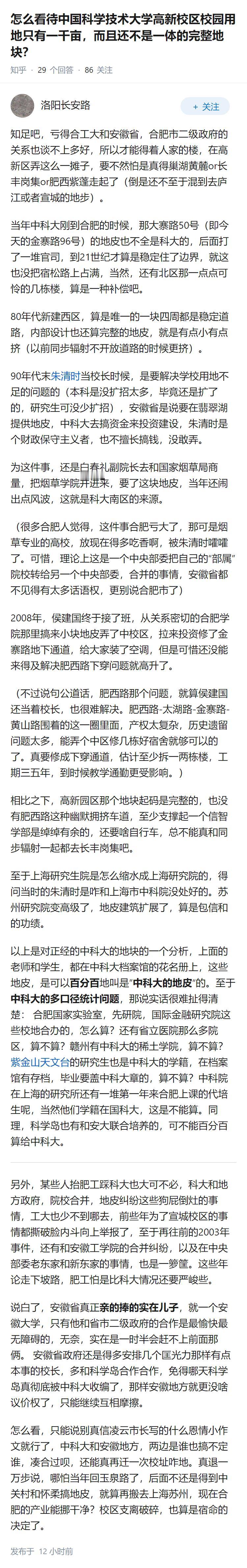 怎么看待中国科学技术大学高新校区校园用地只有一千亩,而且还不是一体的完整地块?