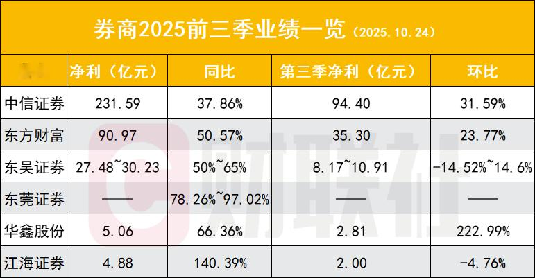 已披露的六家券商2025年前三季度业绩具体情况如下: