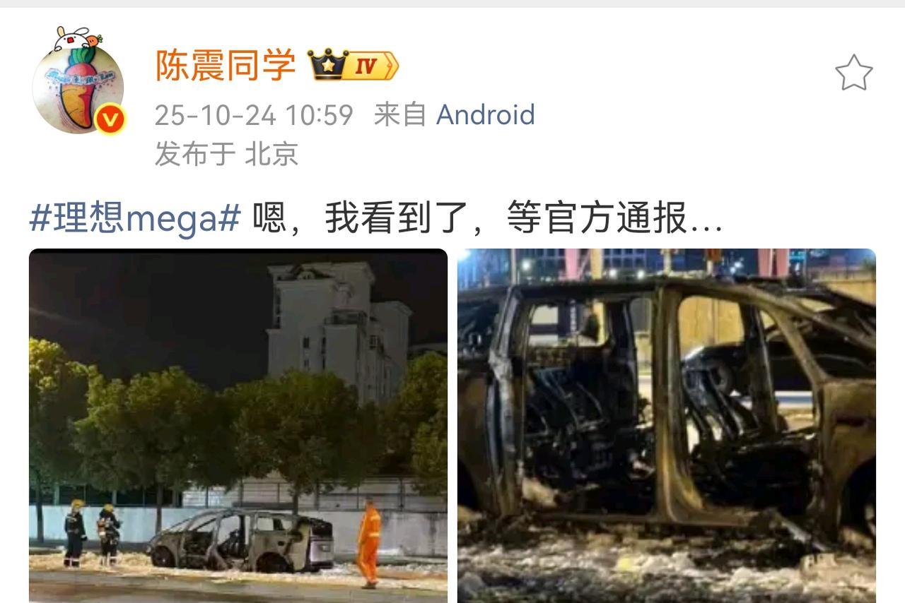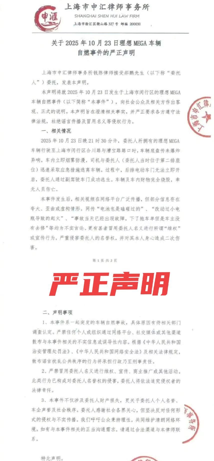 理想汽车,又到舆论“漩涡”了… 10月23日,一辆理想汽车Mega行驶过程中起火事件,从后车的行车记录仪和现场的照片来看、非常惨烈。所幸车内两人成功逃脱,没有造成人身伤害… 车辆起火原因还有待官方结论,但已有个别群体蓄意造谣、抹黑车主,迫使车主承受二次伤害。 现在车主律师函也发了,“皮球”交到了理想汽车手里了。车辆究竟为何自燃,我和陈震一样,坐等官方结论![捂脸]