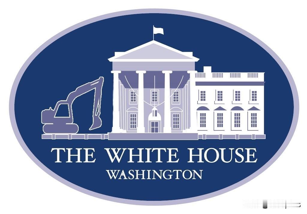 美国网友给白宫的标志给P图了,东翼因为被拆,所以变成了挖掘机。这描绘了白宫的现状,东翼建筑消失了,取而代之的是一个大工地。 在白宫的标志上,东翼是在左侧。而人们印象中,常常是从白宫南草坪的角度,东翼是在右边。 实际上,白宫Logo显示,白宫北门才是这座建筑的正门。南草坪其实是后花园而已。 白宫北面是一个平坦的草坪,处于高处,本来是正门。但因为人们常从南草坪的角度看到白宫,因此留下了错的印象,认为白宫Logo上右侧是东翼,左侧是西翼。