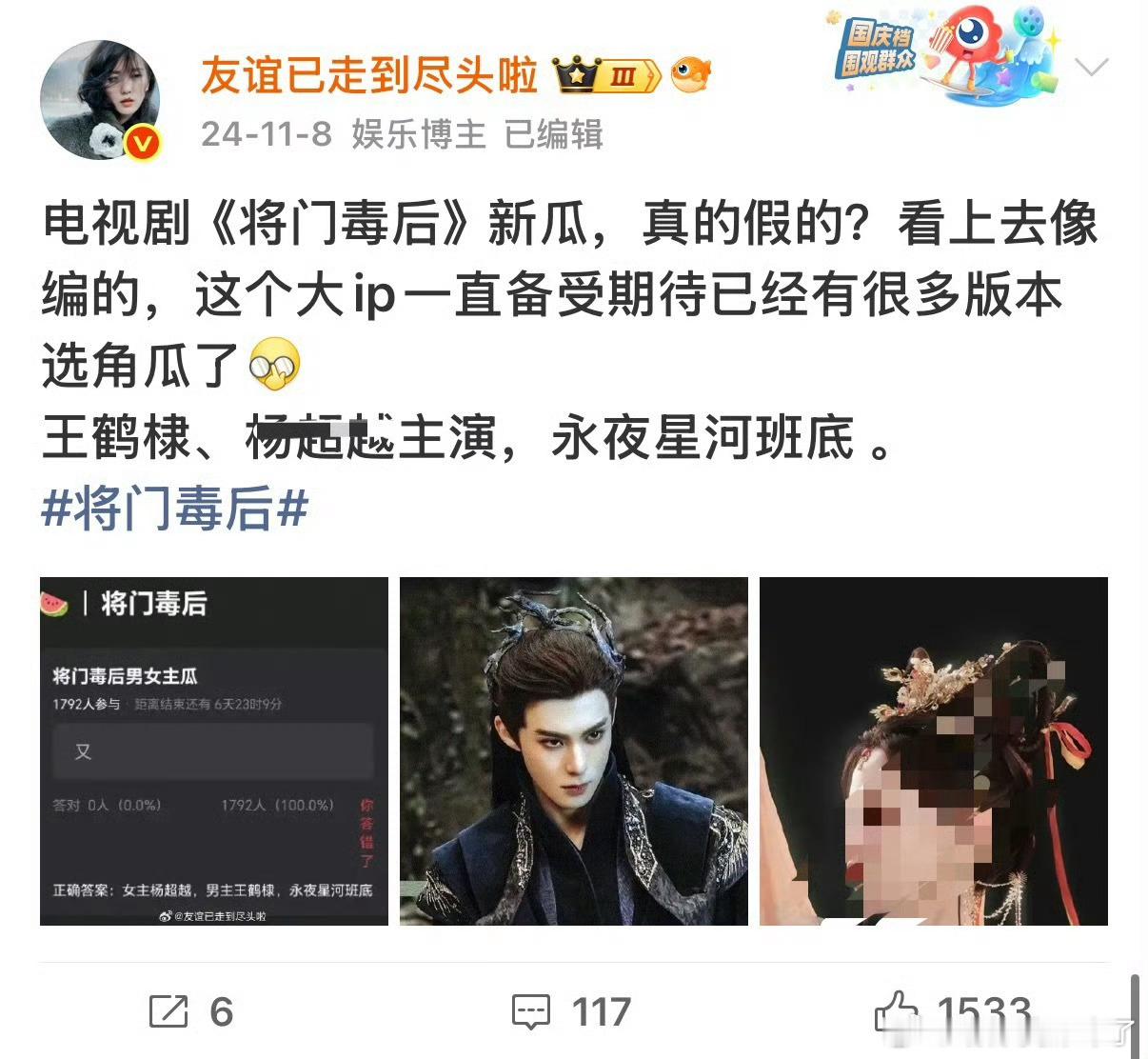 将门毒后选角,女主换了一轮又一轮怎么还在舔王鹤棣啊?[笑cry]